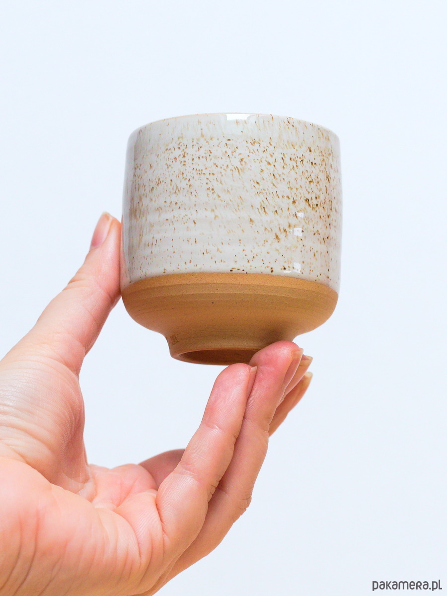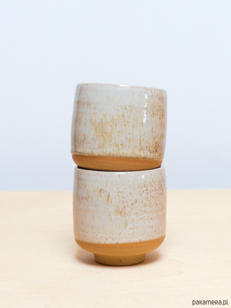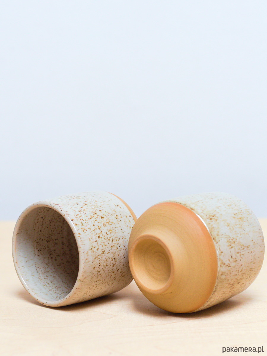 Czarki są szkliwiona na kolor Piasek - jasny beżowy kolor z brązowymi drobinkami.Powierzchnia szkliwa ma błyszczące wykończenie. Odsłonięta glina jest beżowa.
