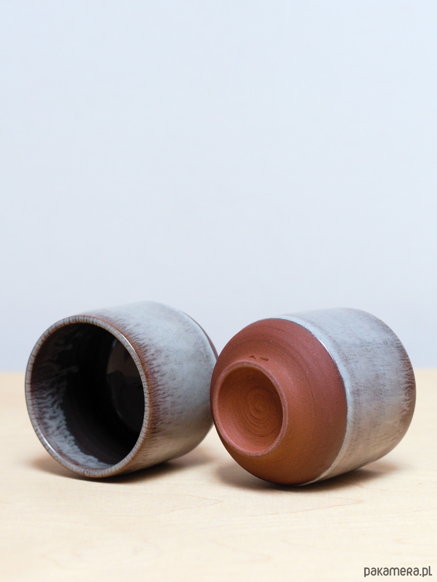 Czarki są szkliwiona na kolor Słone Fale - mieszanka szkliw która kolorem nawiązuje do spienionych fal wiosennego morza. Stonowane kolory szarości lekko kierują się ku niebieskościom. Powierzchnia szkliwa ma błyszczące wykończenie. Odsłonięta glina jest ciemno ruda.