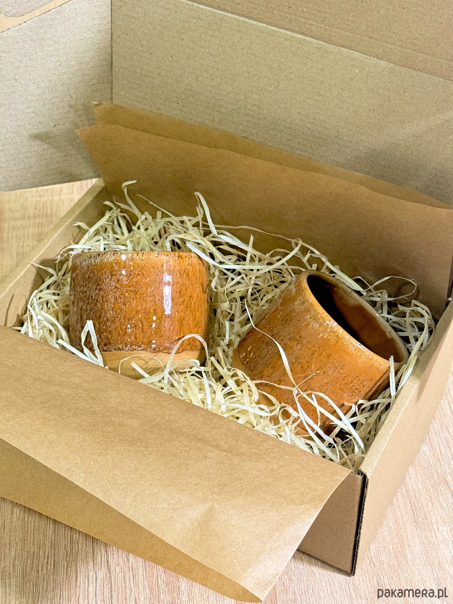 Zestaw dwóch czarek w opakowaniu prezentowym.
