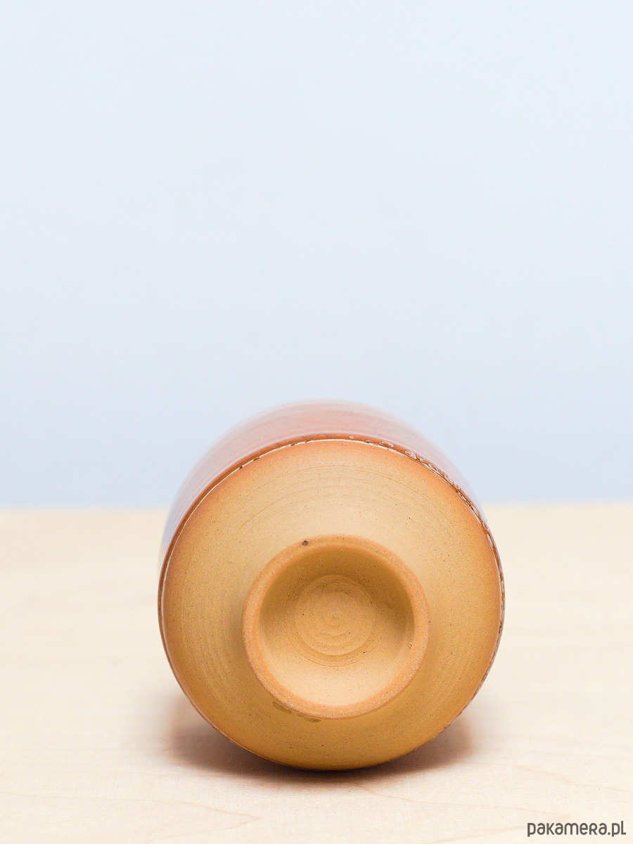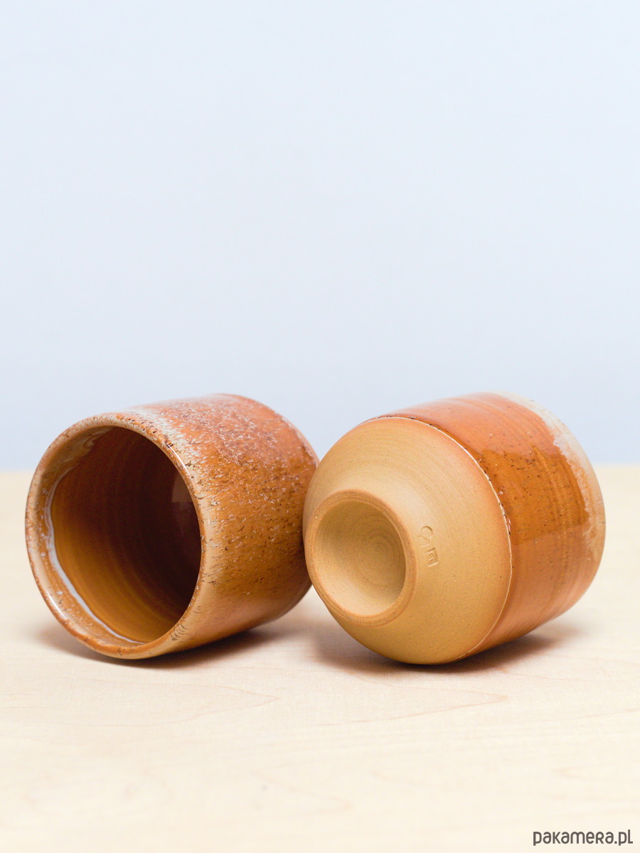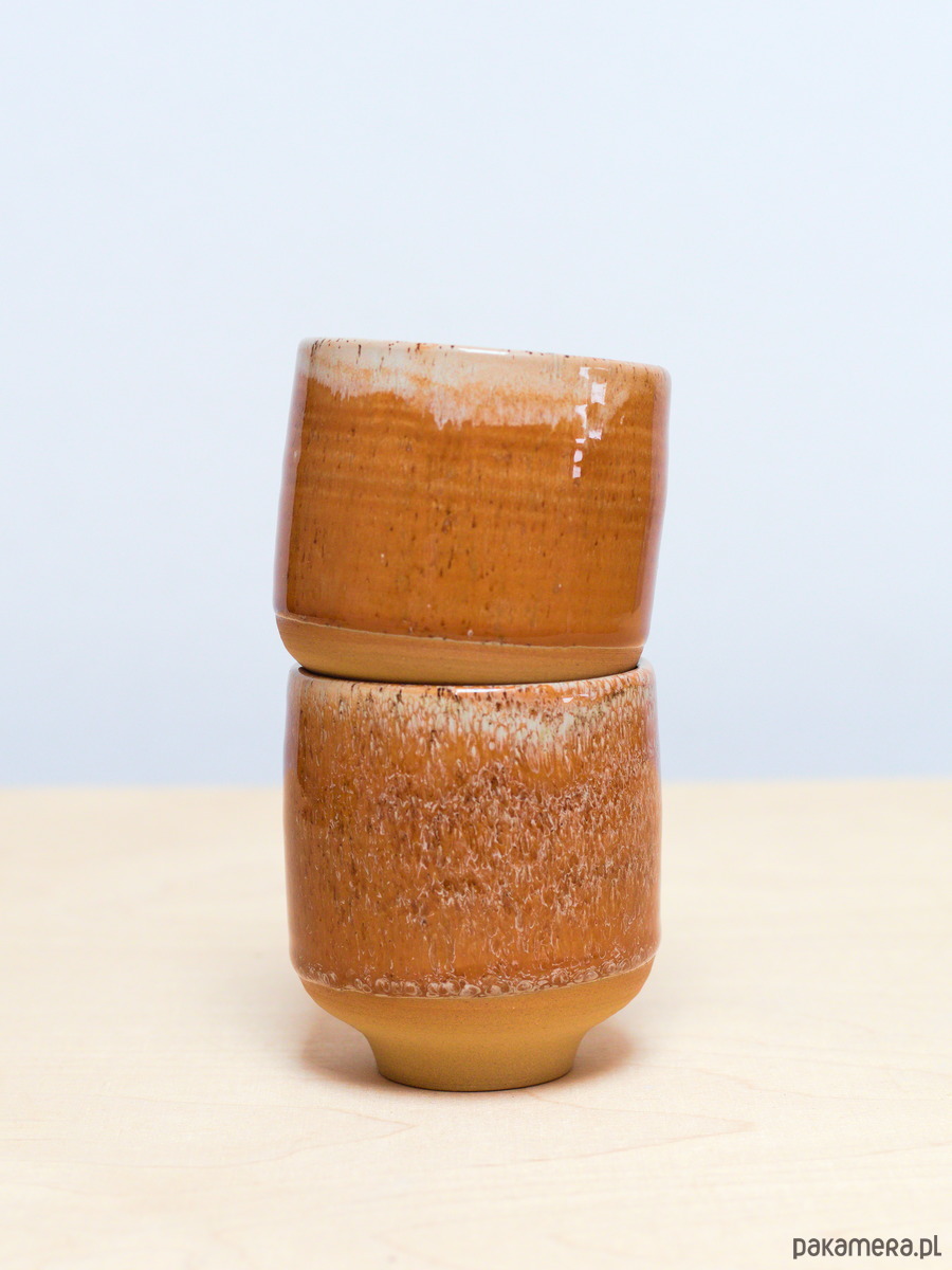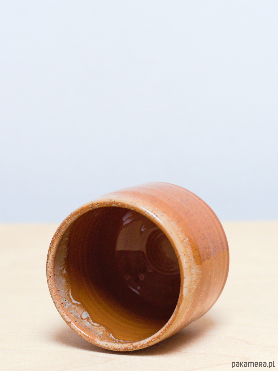 Czarki są szkliwiona na kolor Solony Karmel - ładny ciepły karmelowy kolor z beżowymi drobnymi kropkami. Powierzchnia szkliwa ma błyszczące wykończenie. Odsłonięta glina jest beżowa.