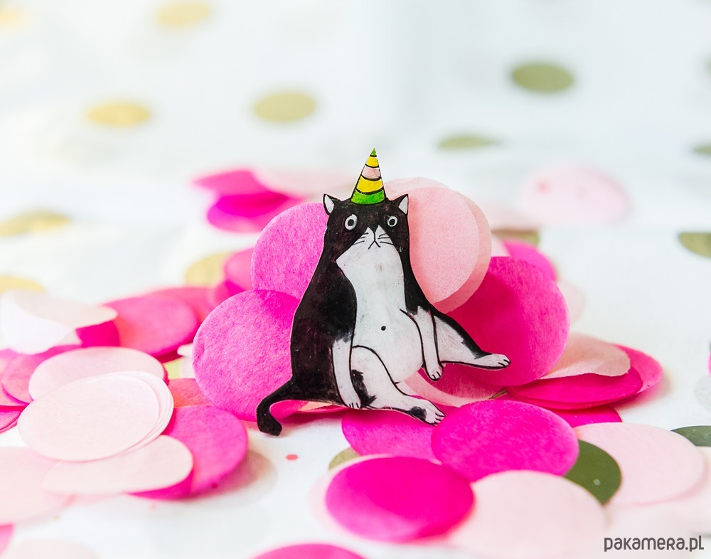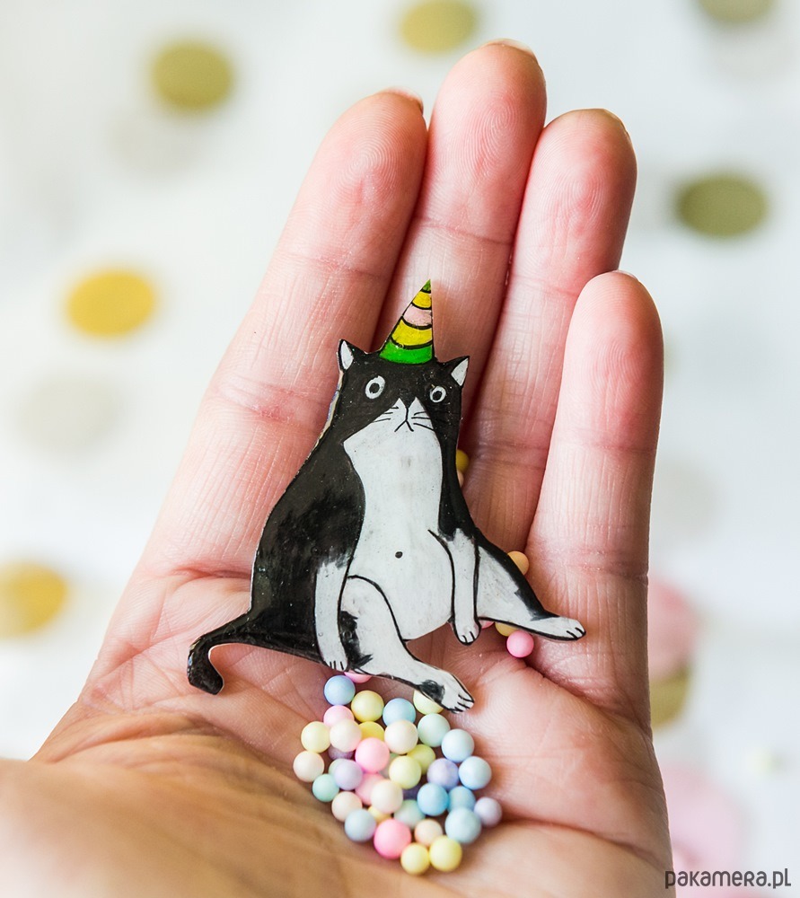 Broszka została ręcznie polakierowana lekierem ekologicznym, dlatego miejscami na jej powierzchni mogą występować małe pęcherzyki powietrza.