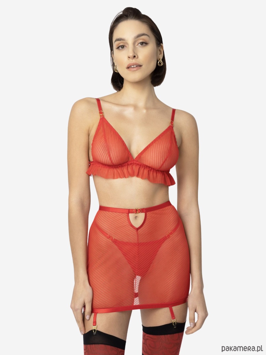 – uszyty z elastycznego, czerwonego tiulu w delikatne paski