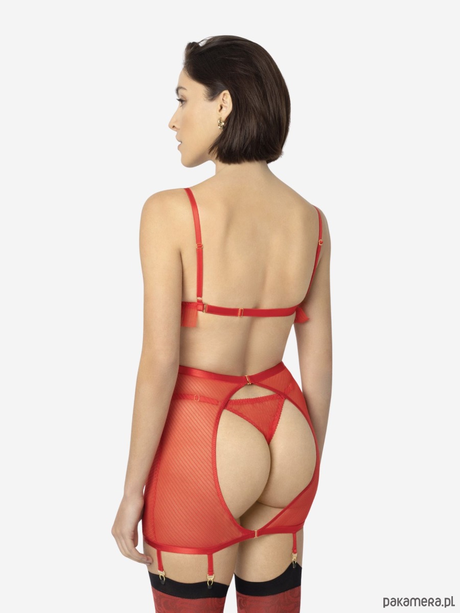 – sześć satynowych, krótkich podwiązek zakończonych metalowymi żabkami w kolorze złota