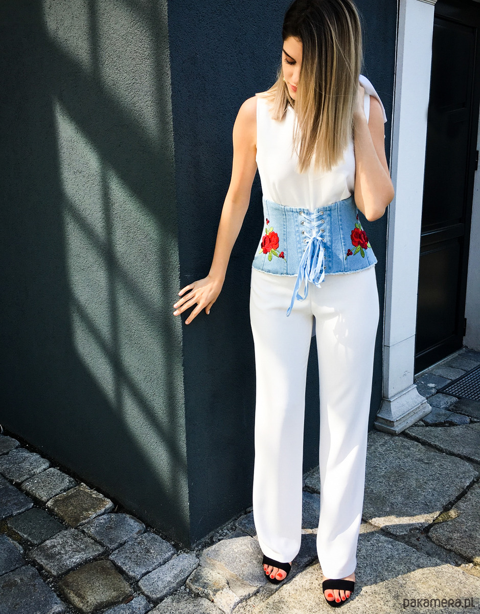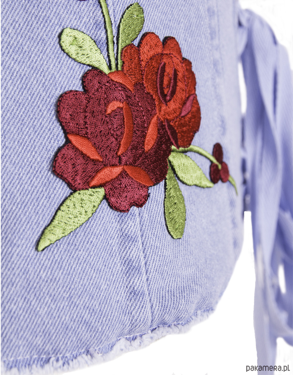 Stylowy pas gorsetowy wykonany z jasnego denimu, który łączy w sobie casualowy charakter z kobiecą elegancją. Model wyróżnia się efektownymi haftami czerwonych róż po bokach, które dodają całości romantycznego i wyrazistego akcentuPas gorsetowy świetnie sprawdzi się jako dodatek do koszul, sukienek czy basicowych topów, tworząc oryginalne i przyciągające uwagę stylizacje. Idealny wybór dla osób, które lubią łączyć klasykę z nowoczesnymi, wyrazistymi detalami.