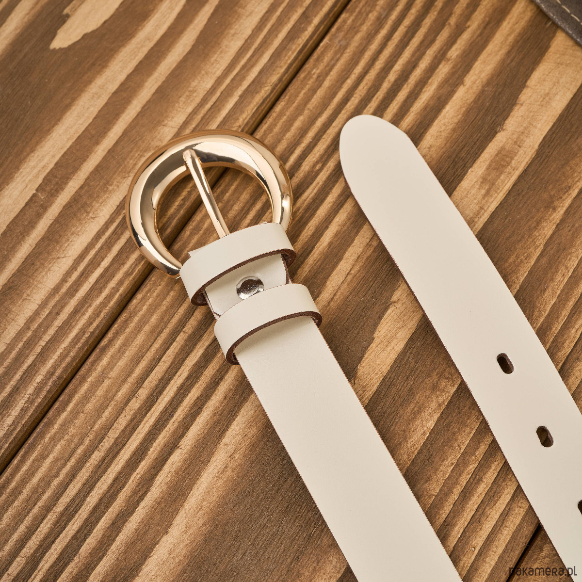 Pasek damski skórzany 100 cm do spodni wąski kremowy licowy złota klamra PG-1