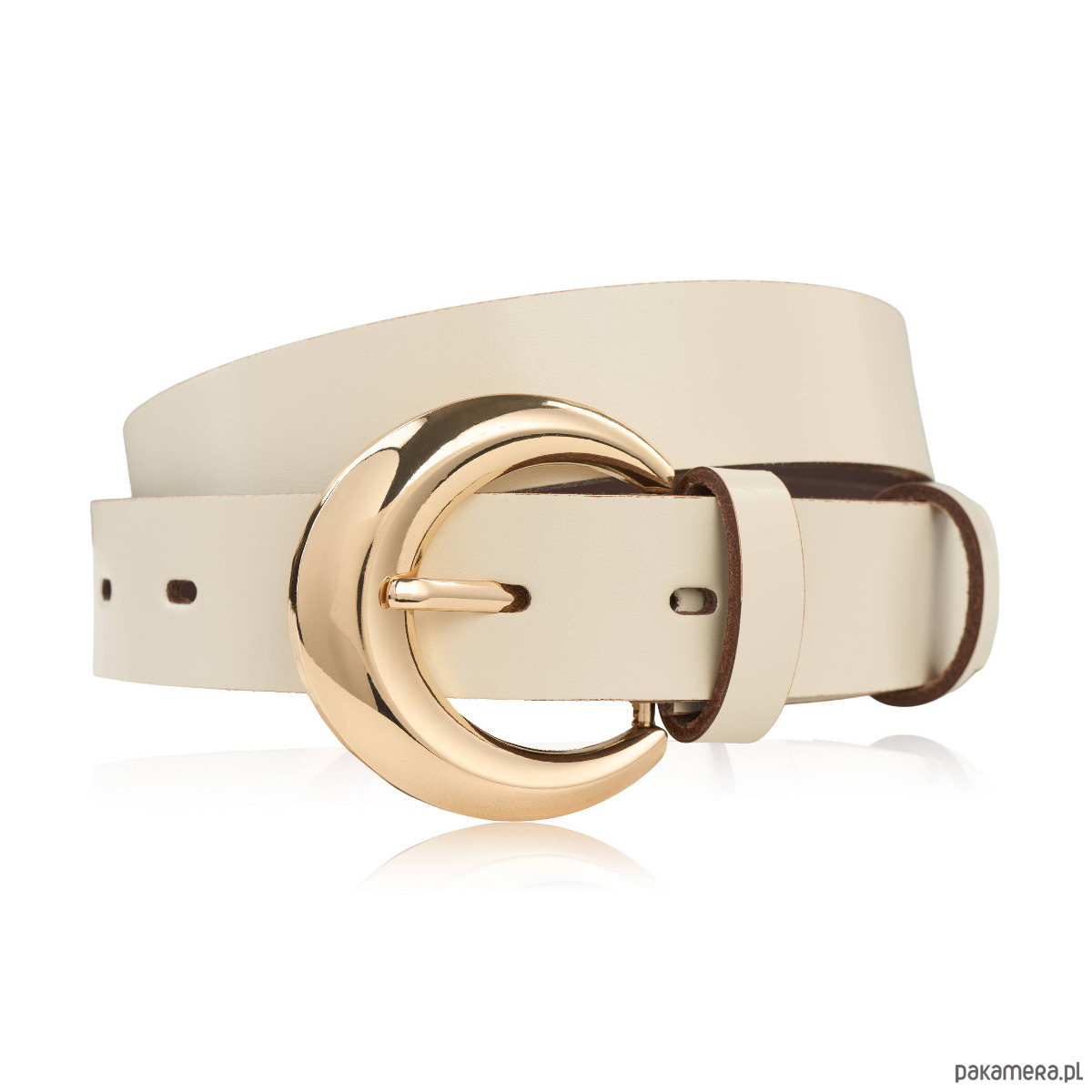 Pasek damski skórzany 90 cm do spodni wąski kremowy licowyPG-13-ECRZ-90