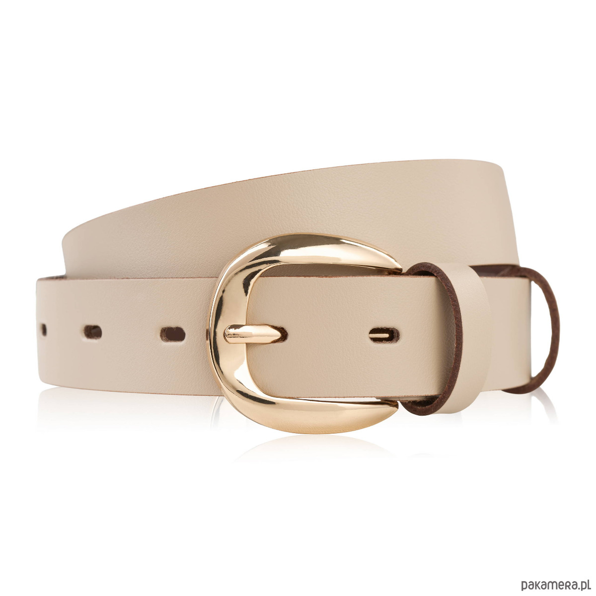 Pasek damski skórzany do spodni wąski beżowy licowy złota klamra PG-14-BZ-100