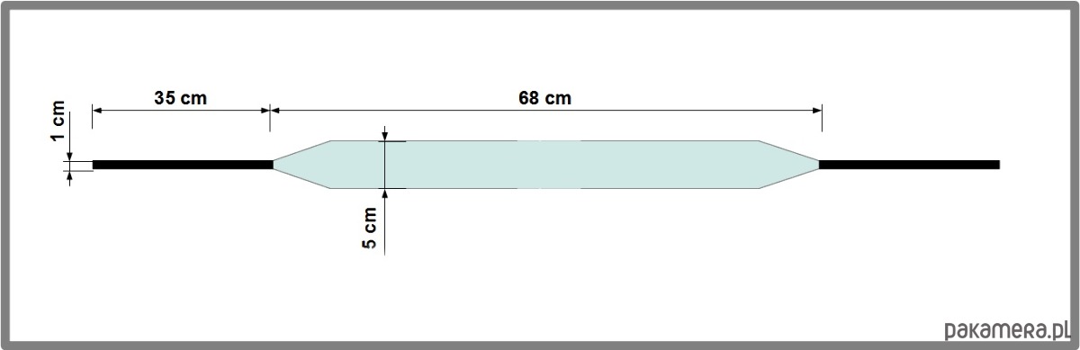 WYMIARY: szerokość 5cm, długość 68cm (długość mierzona od miejsca wszycia wąskich taśm), taśmy mocujące: 1cm x 35cm