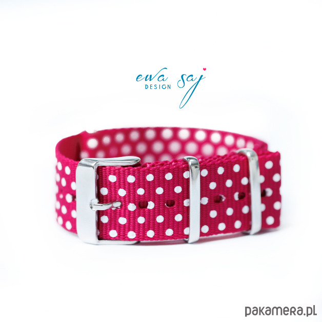 Pasek do zegarka, nato strap, dots amarantowy