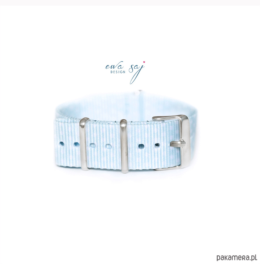 Pasek w stylu militarnym wykonany z tkaniny, zapinany na tradycyjną klamerkę w kolorze srebrnym. Pasuje na nadgarstek 13,5 - 20 cm. szerokość paseczka 20 mm.