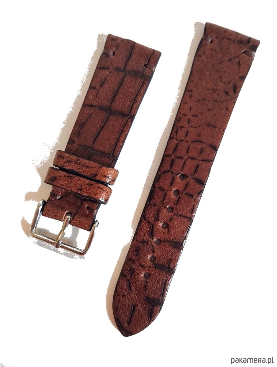 Pasek wykonany z wysokiej jakości naturalnej skóry w kolorze ciemnego brązu z tłoczoną fakturą krokodyla. Pasek szyty nicią w kolorze skóry. Brzegi paska malowane w kolorze skóry. Pasek wykonany w całości ręcznie przy użyciu tradycyjnych metod , szycie , malowanie brzegów , zgodne z tradycyjną sztuką rzemieślniczą . Pasek jest wystawiany w obniżonej cenie, ze względu na różną fakturę tłoczenia przy klamerce. Pasek jest nowy i w pełni wartościowy. Połączenie szlachetnej skóry ze szczególną dbałością wykonania wyróżnia nasze paski na tle innych. Każdy pasek wykonany jest jako pojedynczy egzemplarz , więc jeśli szukasz czegoś wyjątkowego to nasz pasek jest odpowiednim wyborem dla Ciebie . Ciekawy pasek dobrany do zegarka zawsze poprawi efekt wizualny całego zestawu. Więcej ofert na naszej stronie Lamato , Zapraszamy