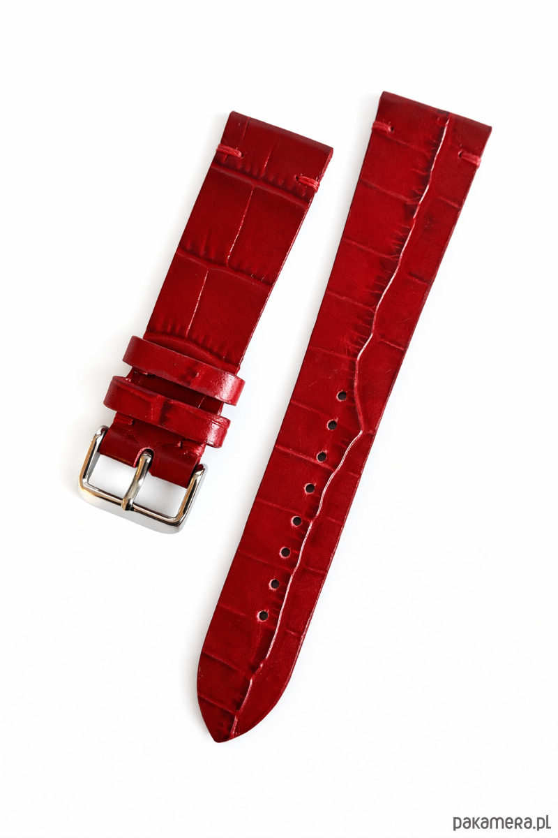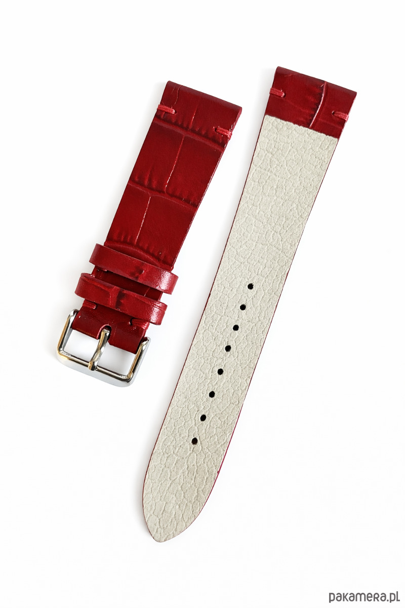 Piękny pasek wykonany z bardzo wysokiej jakości naturalnej skóry w kolorze czerwonym z tłoczoną fakturą krokodyla. Pasek szyty nicią dobraną do koloru skóry. Brzegi paska malowane w kolorze skóry. Pasek wykonany w całości ręcznie przy użyciu tradycyjnych metod , szycie , malowanie brzegów , zgodne z tradycyjną sztuką rzemieślniczą . Połączenie szlachetnej skóry ze szczególną dbałością wykonania wyróżnia nasze paski na tle innych. Każdy pasek wykonany jest jako pojedynczy egzemplarz , więc jeśli szukasz czegoś wyjątkowego to nasz pasek jest odpowiednim wyborem dla Ciebie . Ciekawy pasek dobrany do zegarka zawsze poprawi efekt wizualny całego zestawu. Więcej ofert na naszej stronie Lamato , Zapraszamy