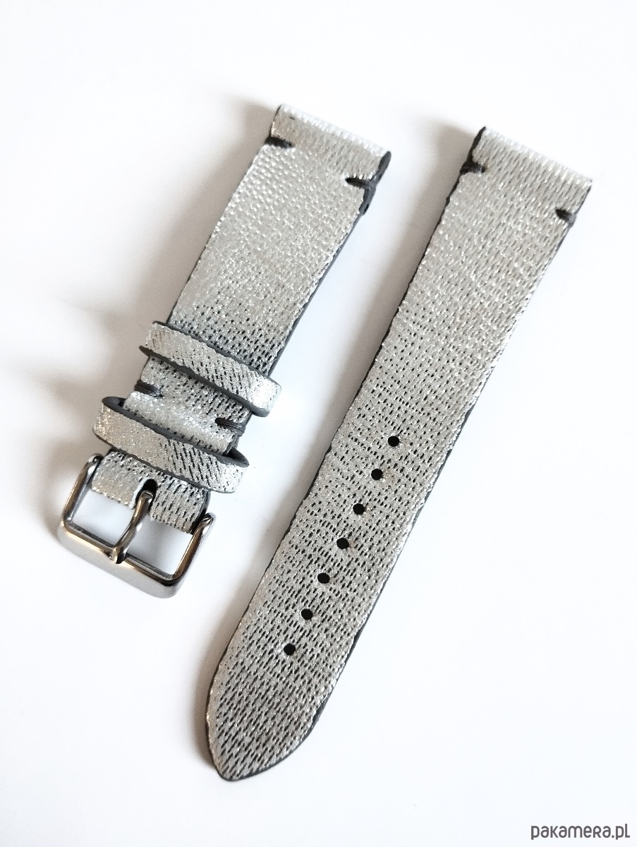 Piękny pasek wykonany z wysokiej jakości naturalnej w kolorze srebrnym o tłoczonej delikatnej łusce węża. Pasek szyty nicią dobraną do koloru skóry. Brzegi paska malowane w kolorze skóry. Pasek wykonany w całości ręcznie przy użyciu tradycyjnych metod , szycie , malowanie brzegów , zgodne z tradycyjną sztuką rzemieślniczą . Połączenie szlachetnej skóry ze szczególną dbałością wykonania wyróżnia nasze paski na tle innych. Każdy pasek wykonany jest jako pojedynczy egzemplarz , więc jeśli szukasz czegoś wyjątkowego to nasz pasek jest odpowiednim wyborem dla Ciebie . Ciekawy pasek dobrany do zegarka zawsze poprawi efekt wizualny całego zestawu. Więcej ofert na naszej stronie Lamato , Zapraszamy