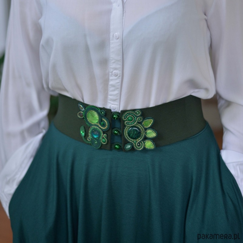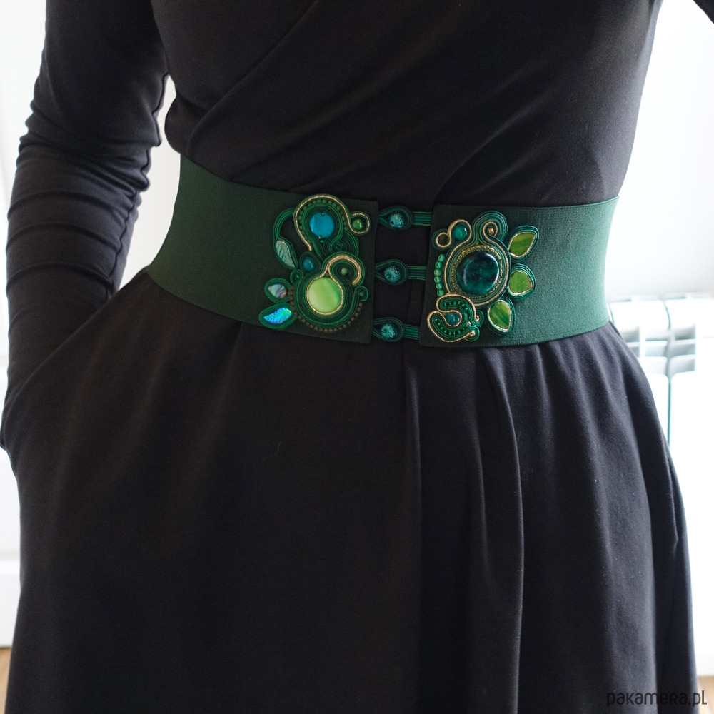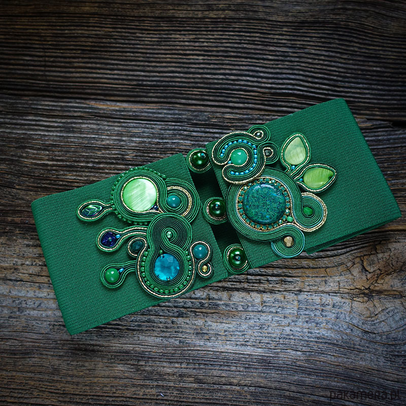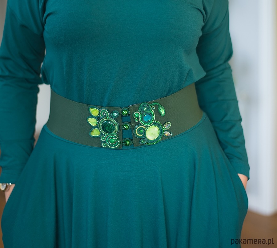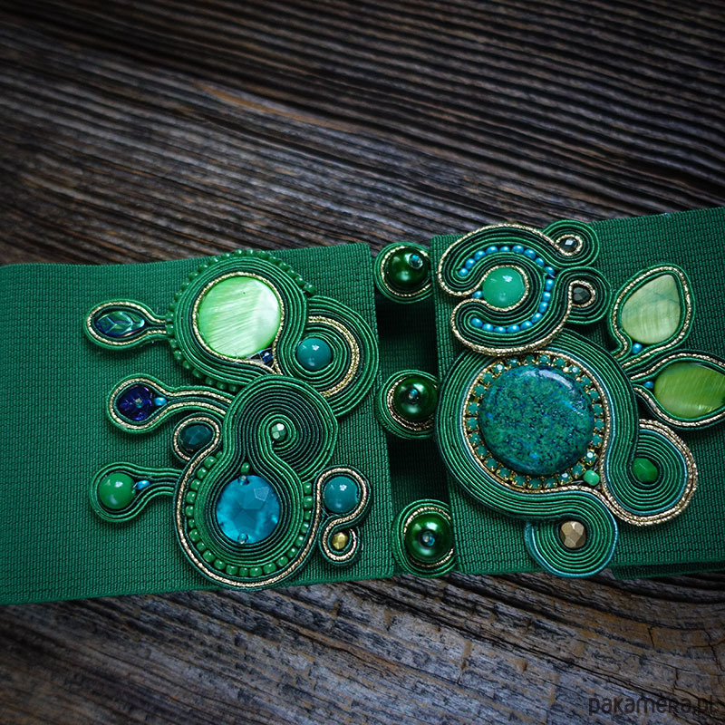 Ozdobna „klamra” została wykonana metodą haftu soutache w ramach zielonej kolekcji Isobelle.