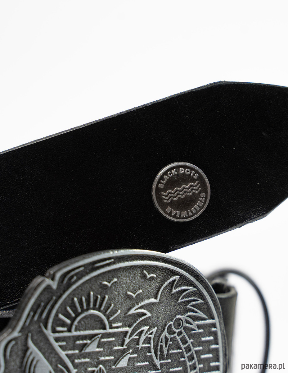 Jego znakiem rozpoznawczym jest autorska klamra Black Dots – każda jest manualnie przecierana, co nadaje jej niepowtarzalną fakturę i subtelną głębię. Dzięki temu każdy pasek zyskuje swój indywidualny charakter i nie ma dwóch identycznych egzemplarzy.