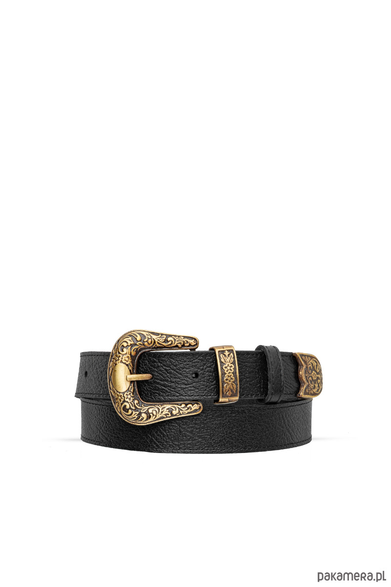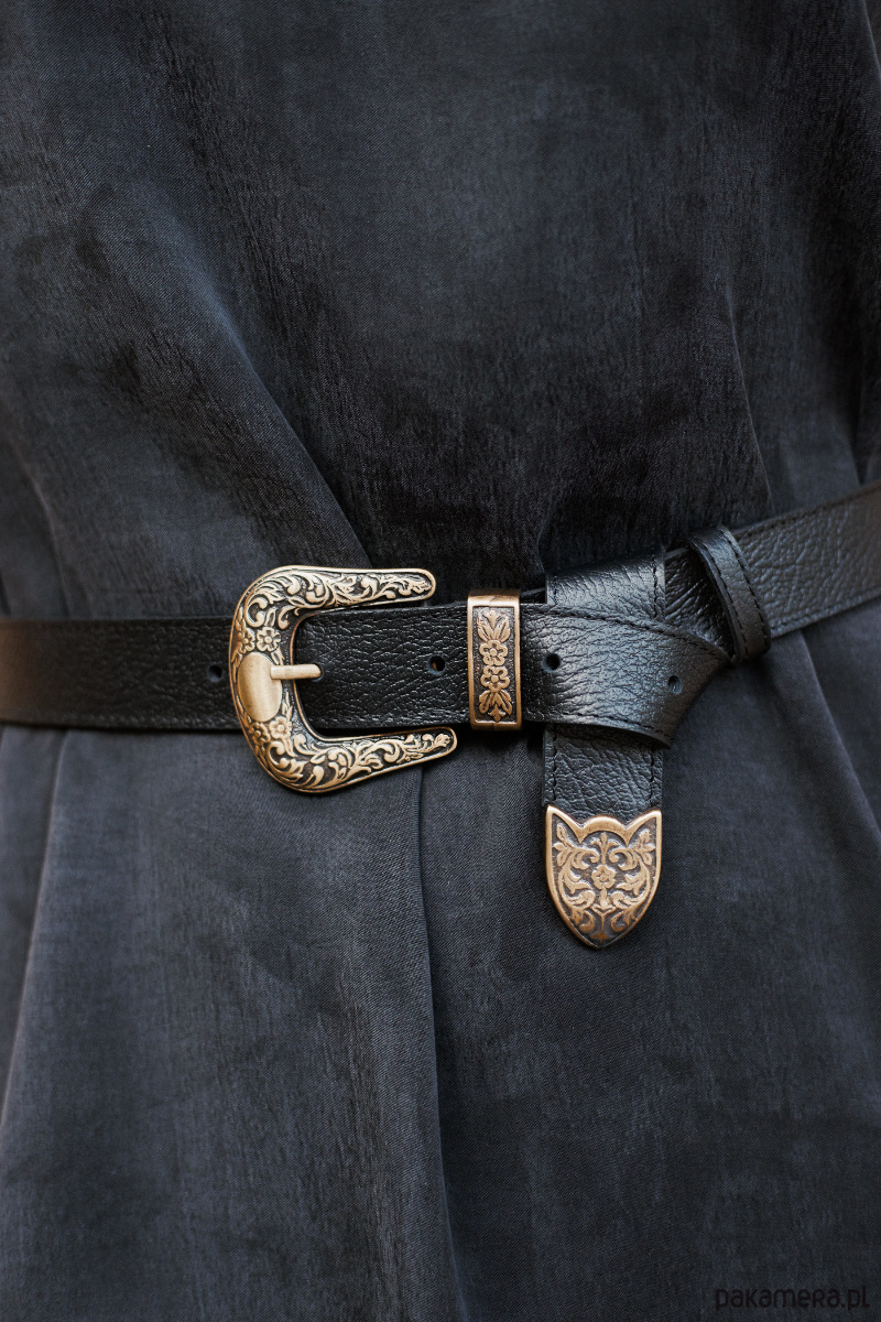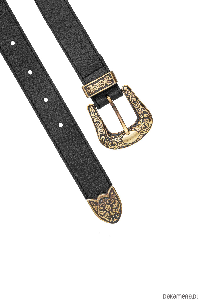 – pasek zawiera zestaw okuć: klamra, szlufka i końcówka z motywem kwiatów