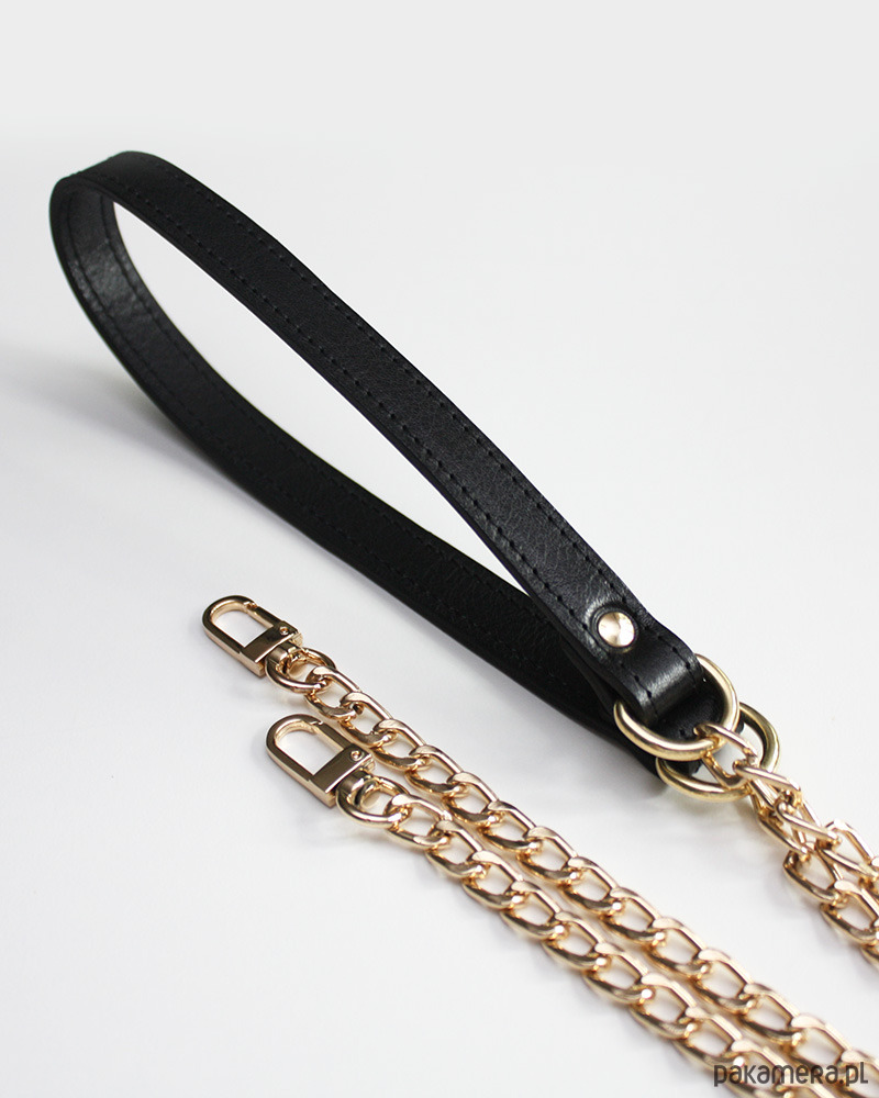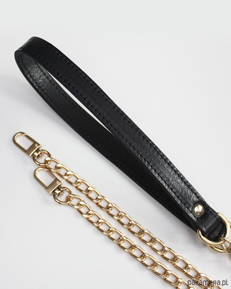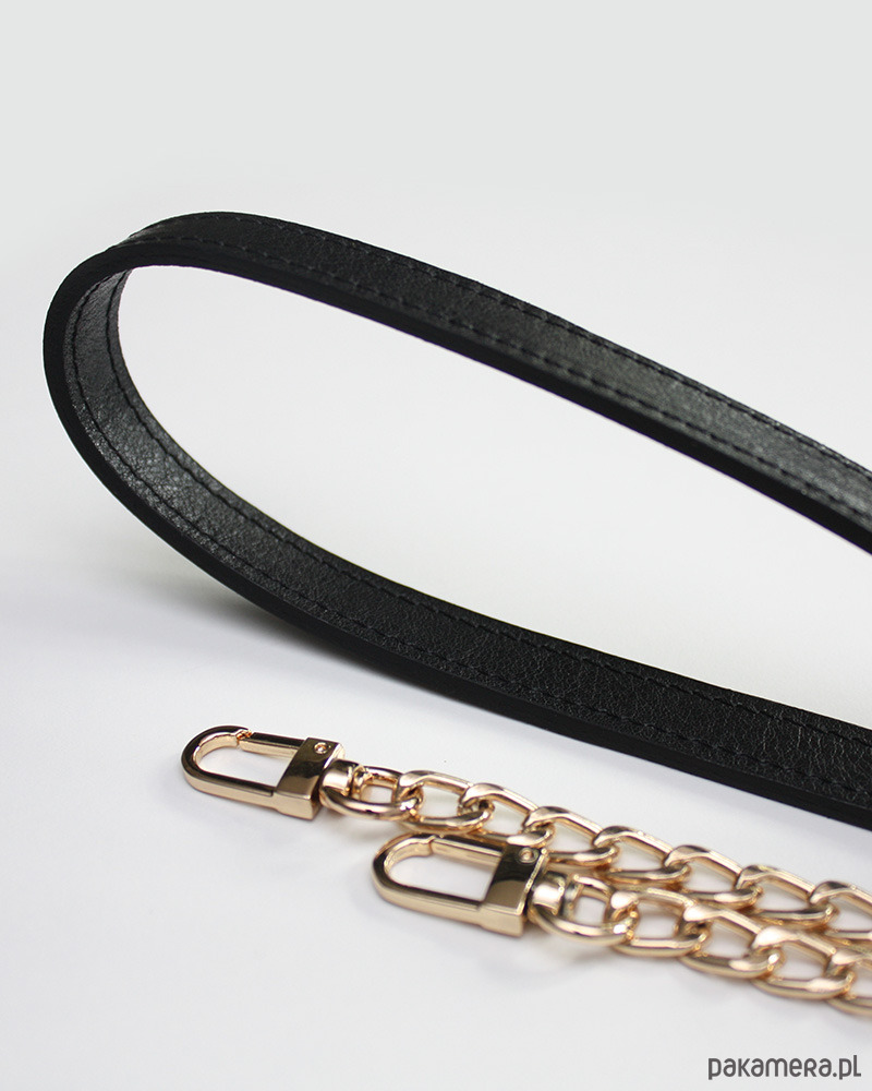 Pasek został wykonany ręcznie, z naturalnej skóry licowej w kolorze czarnym. Możesz swobodnie wymieniać go pomiędzy torebkami, ponieważ zakończony jest wygodnymi karabińczykami. Pasek idealnie pasuje do kopertówek czy małych torebek.