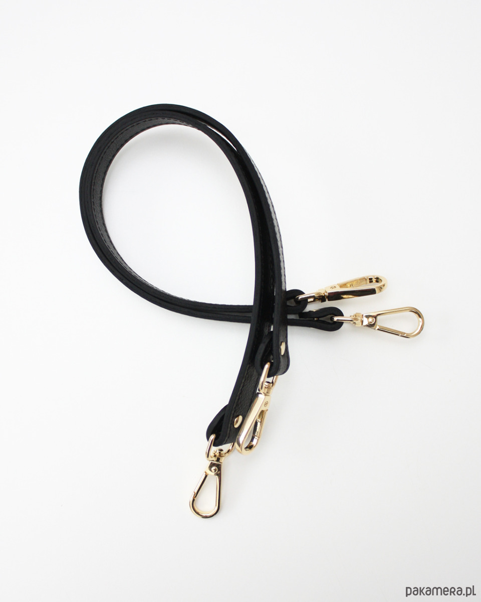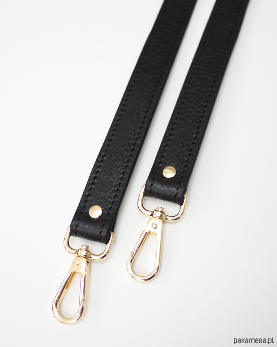Skórzane rączki do torebki w kolorze czarnym. Wymienne paski zakończone są uchwytami. Rączki wykonane są z naturalnej skóry licowej w połączeniu z mocnym łańcuszkiem metalowym. Rączki zakończone są karabińczykami, które przypniesz do swojej torebki.