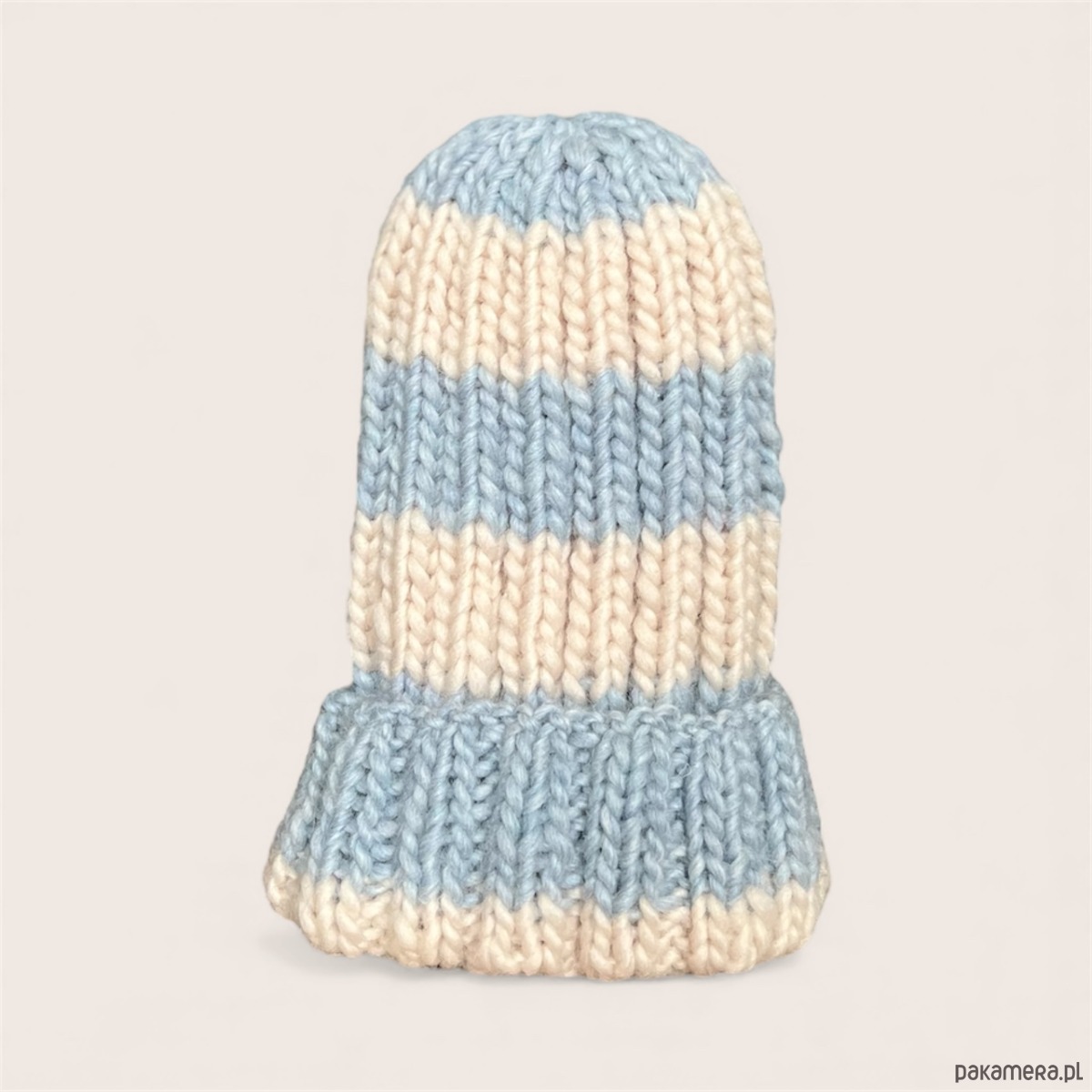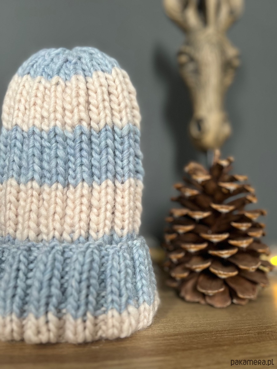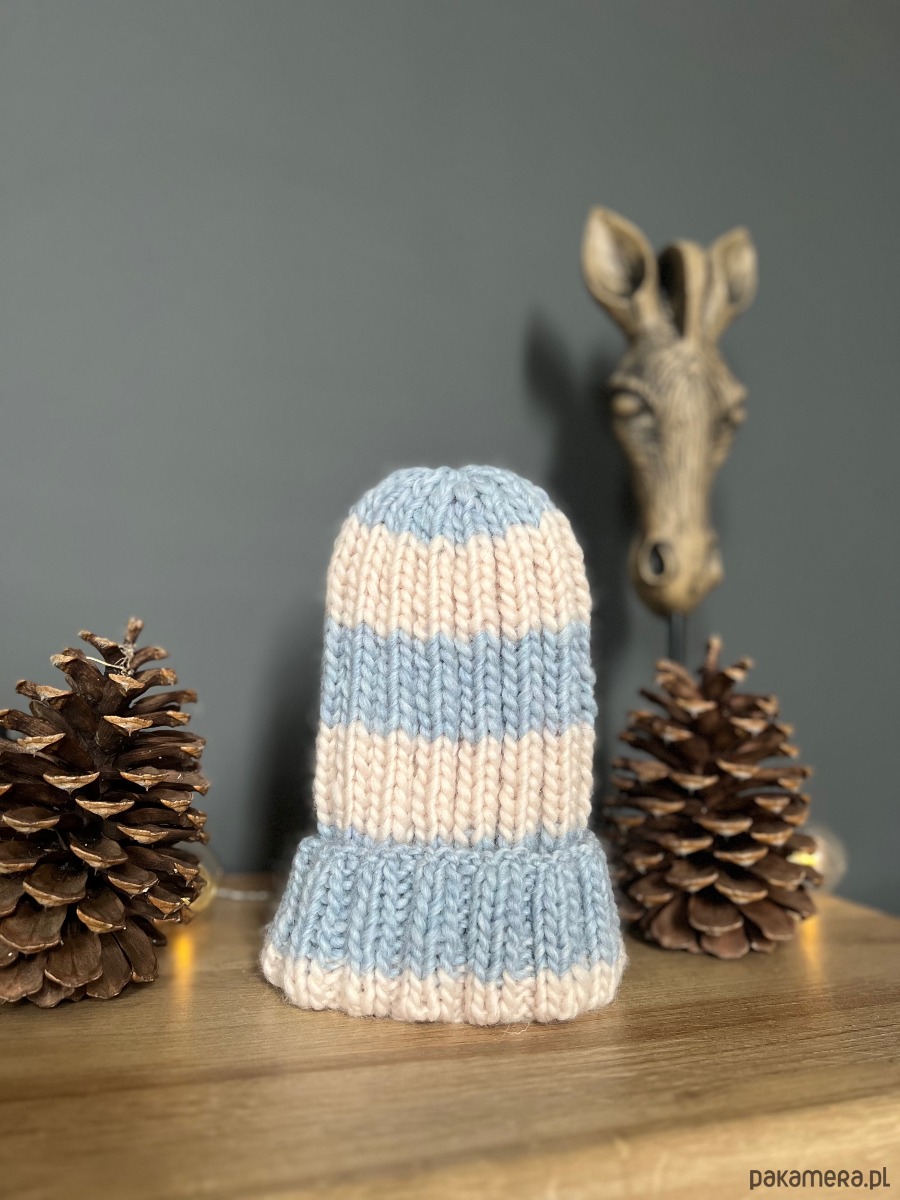 Czapka w paski, wykonana z naturalnej włóczki 100% wełna.