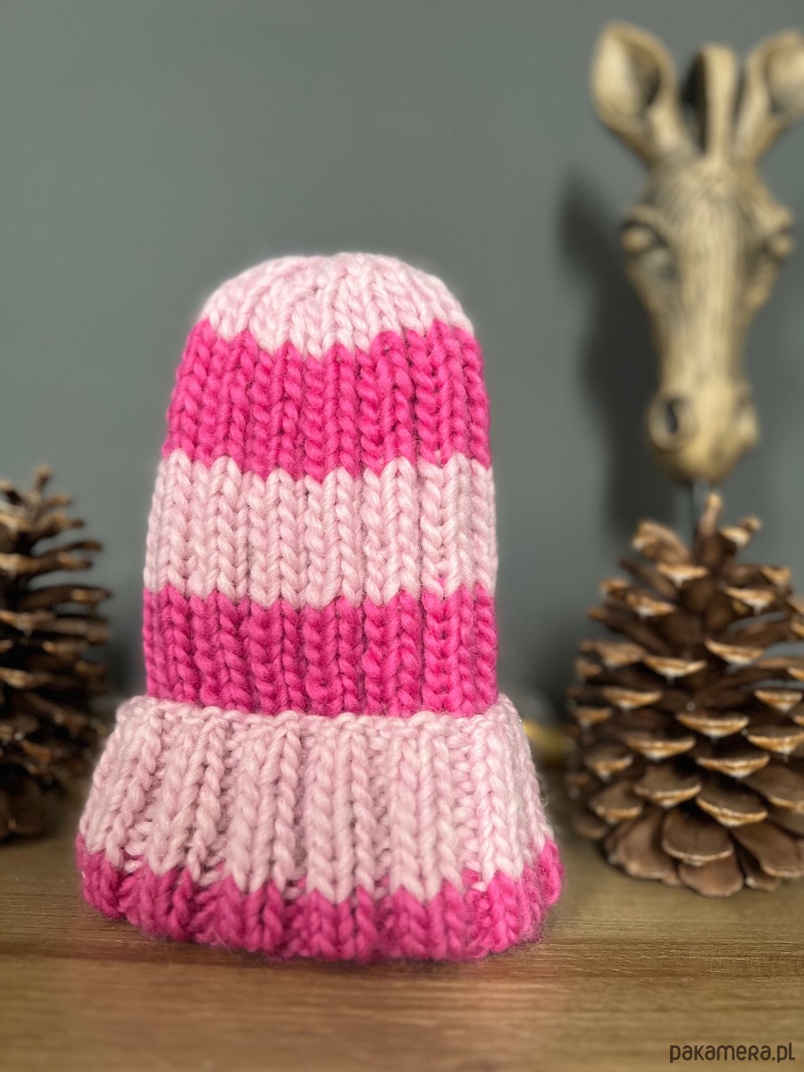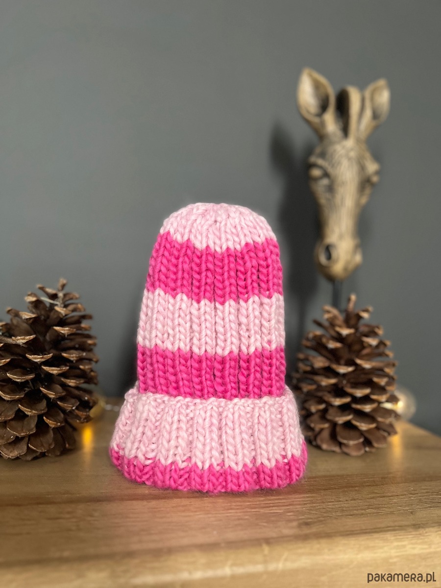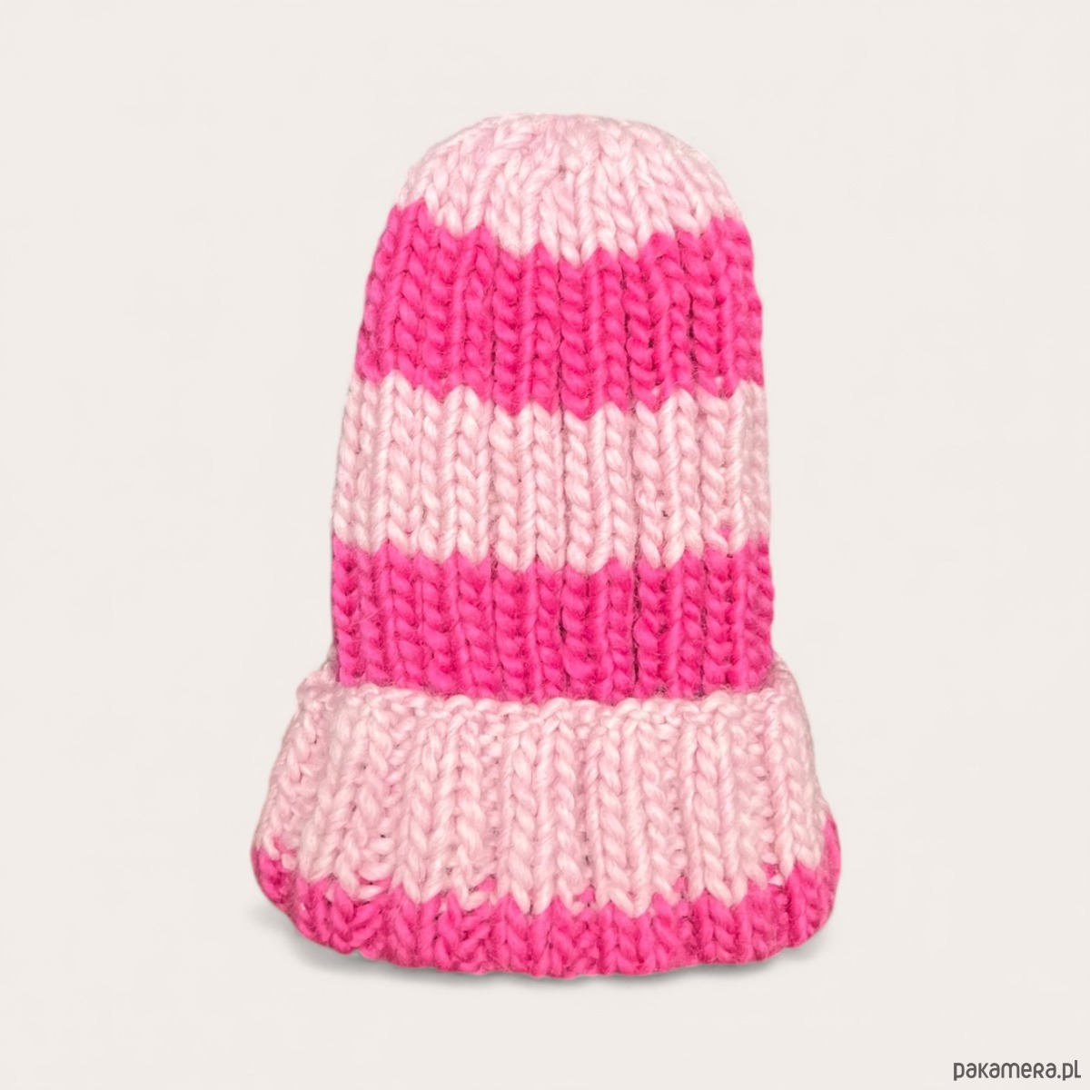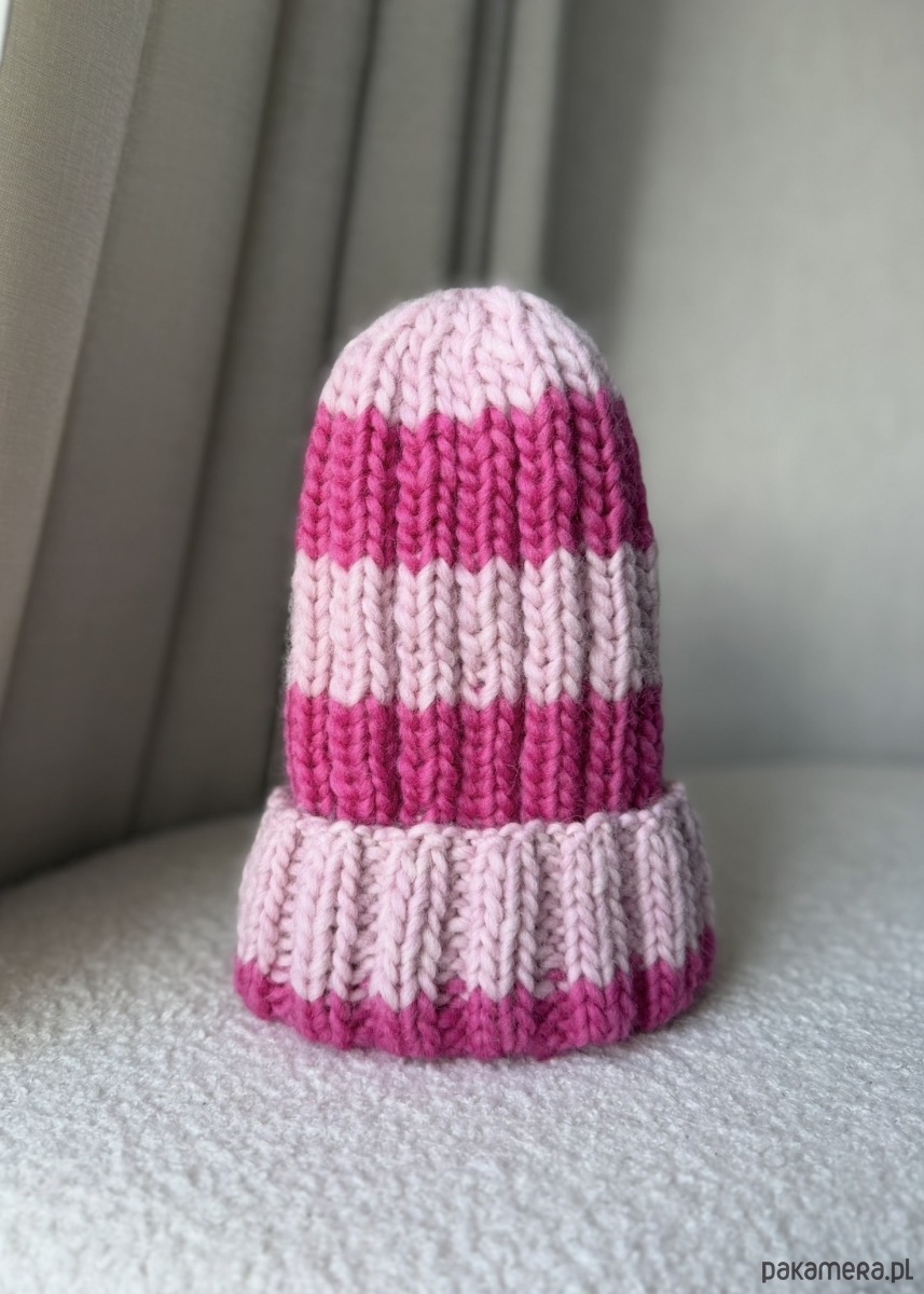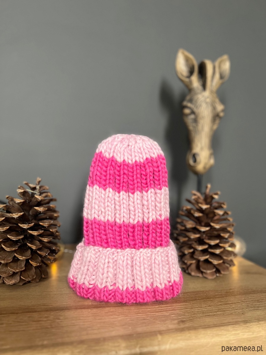 Czapka w paski, wykonana z naturalnej włóczki 100% wełna.