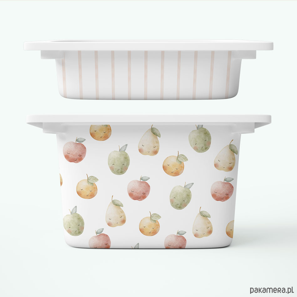 Paski i jabłka - naklejki na pojemniki na zabawki