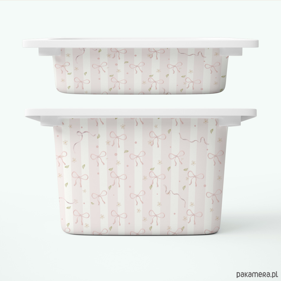 Paski i kokardki - naklejki na pojemniki na zabawki