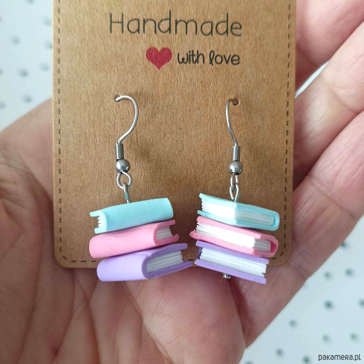 Wykonane ręcznie z gliny polimerowej, kolczyki są lekkie i wygodne w noszeniu na co dzień. Ich oryginalny motyw doskonale sprawdzi się jako element stylizacji dla osób związanych z edukacją lub po prostu zakochanych w książkach.