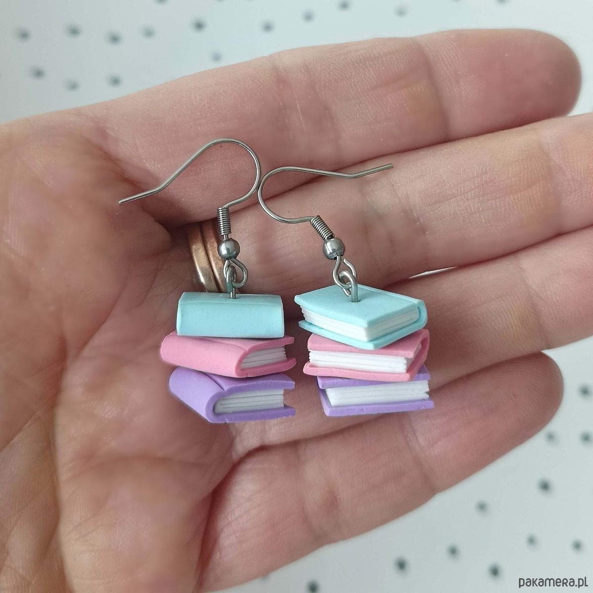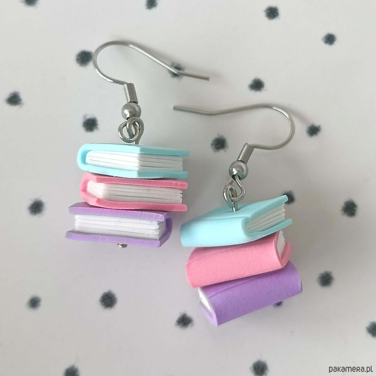 Urocze kolczyki w kształcie stosu książek to idealny dodatek dla wszystkich miłośników czytania. Subtelne pastelowe kolory i dopracowane detale sprawiają, że są jednocześnie delikatne i wyjątkowe.