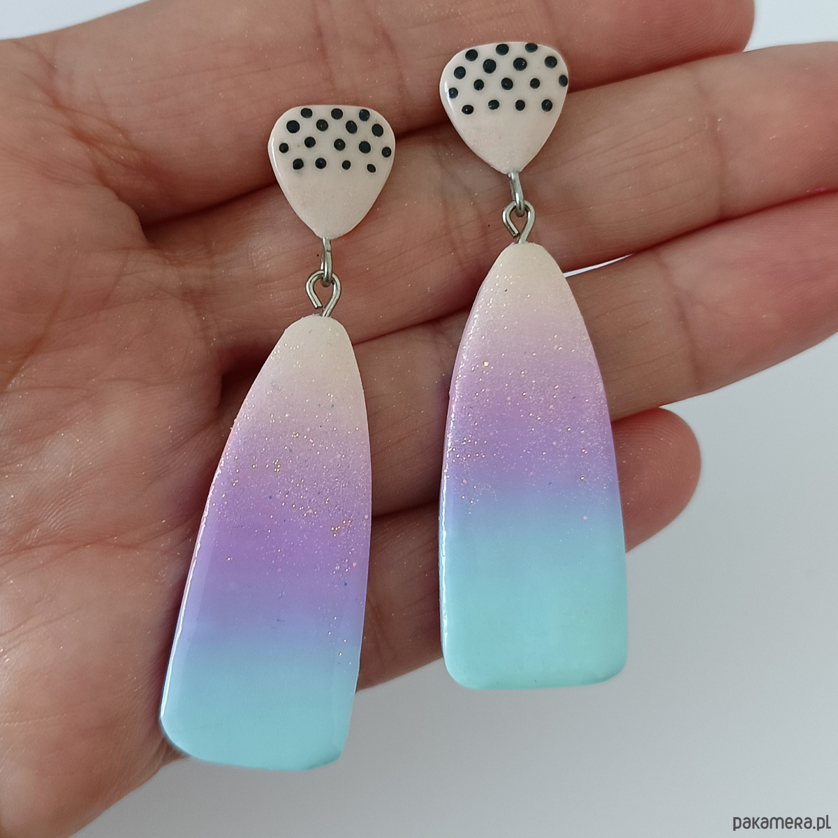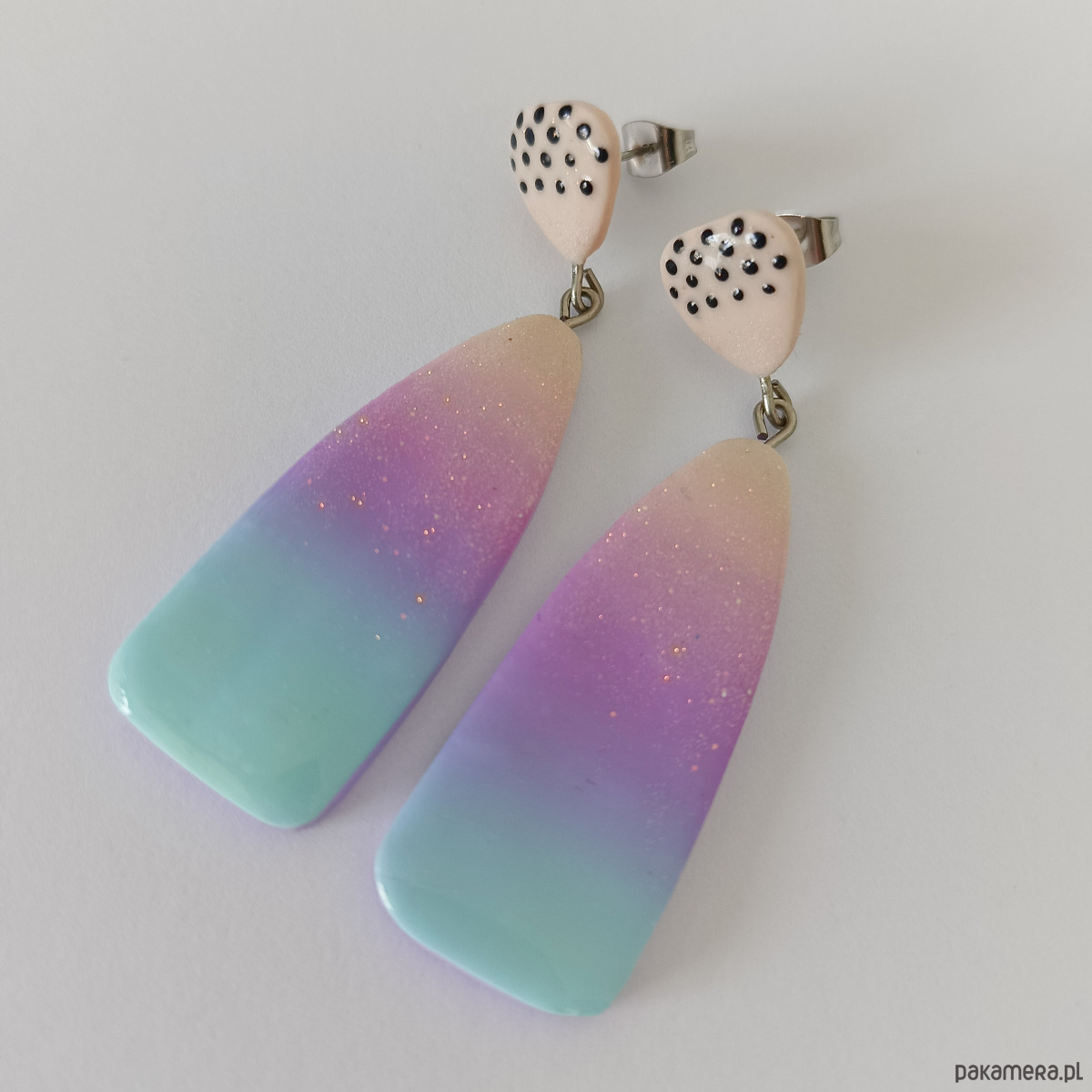 Dodaj odrobinę koloru do swojej letniej stylizacji dzięki tym wyjątkowym, ręcznie robionym kolczykom w pastelowym stylu ombre. Połączenie błękitu, fioletu i różu z delikatnym brokatowym połyskiem sprawia, że są one idealne na lato, wakacje, festiwale czy jako wyjątkowy prezent.