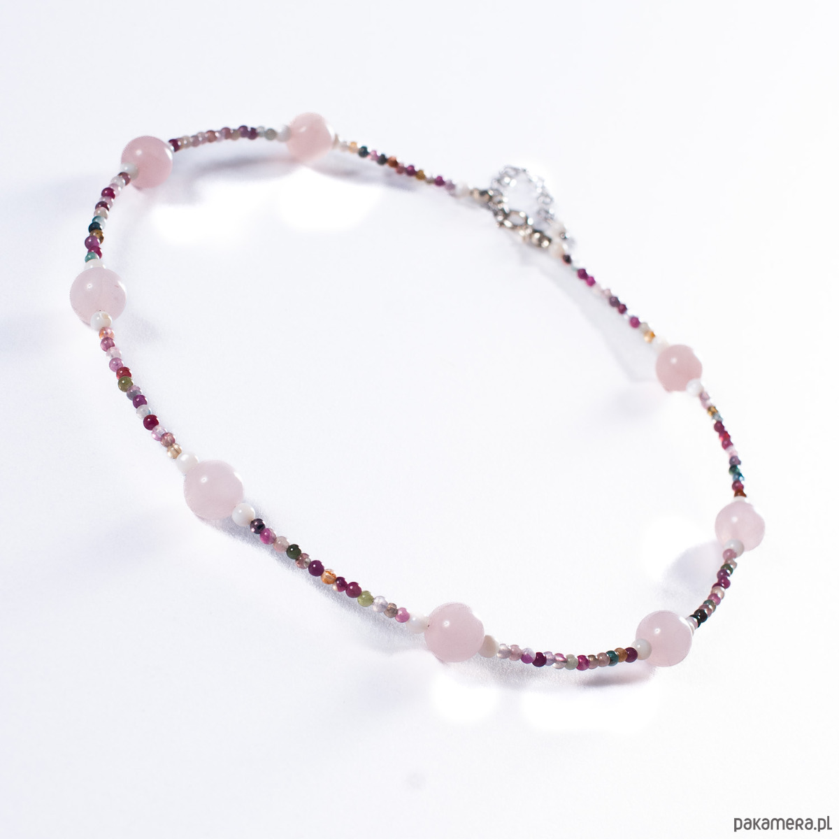 - Rodzaj kamienia: turmalin, kwarc różowy