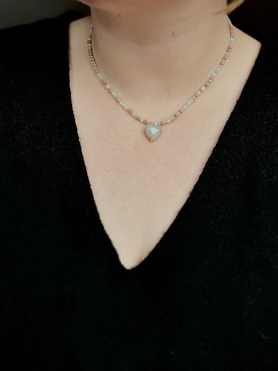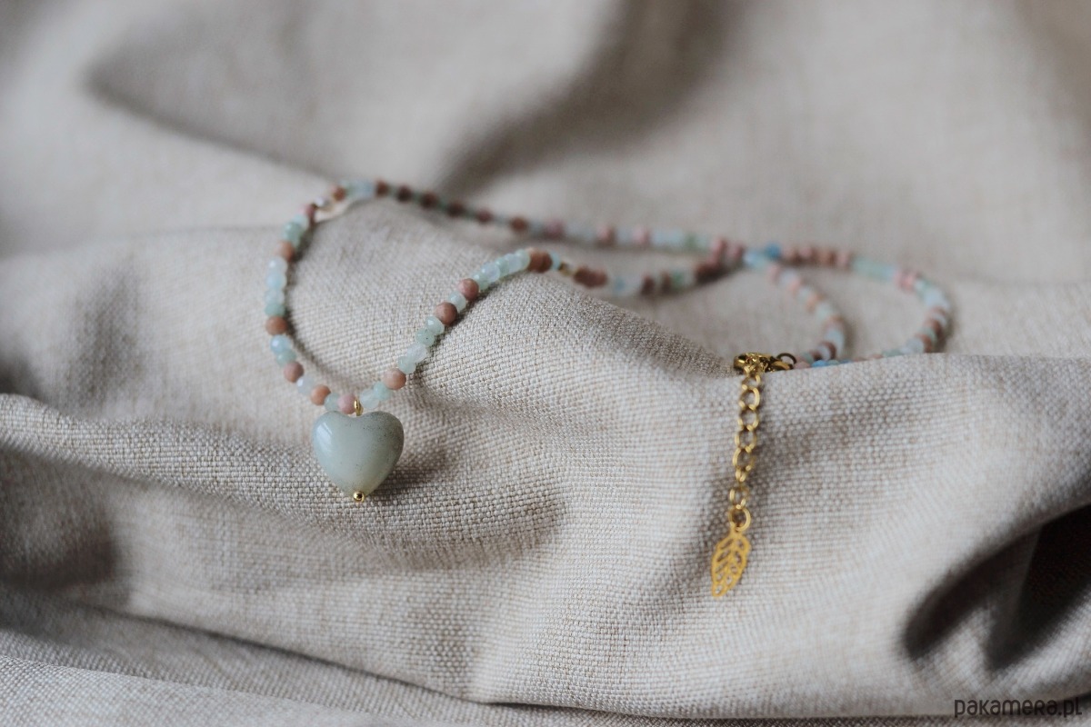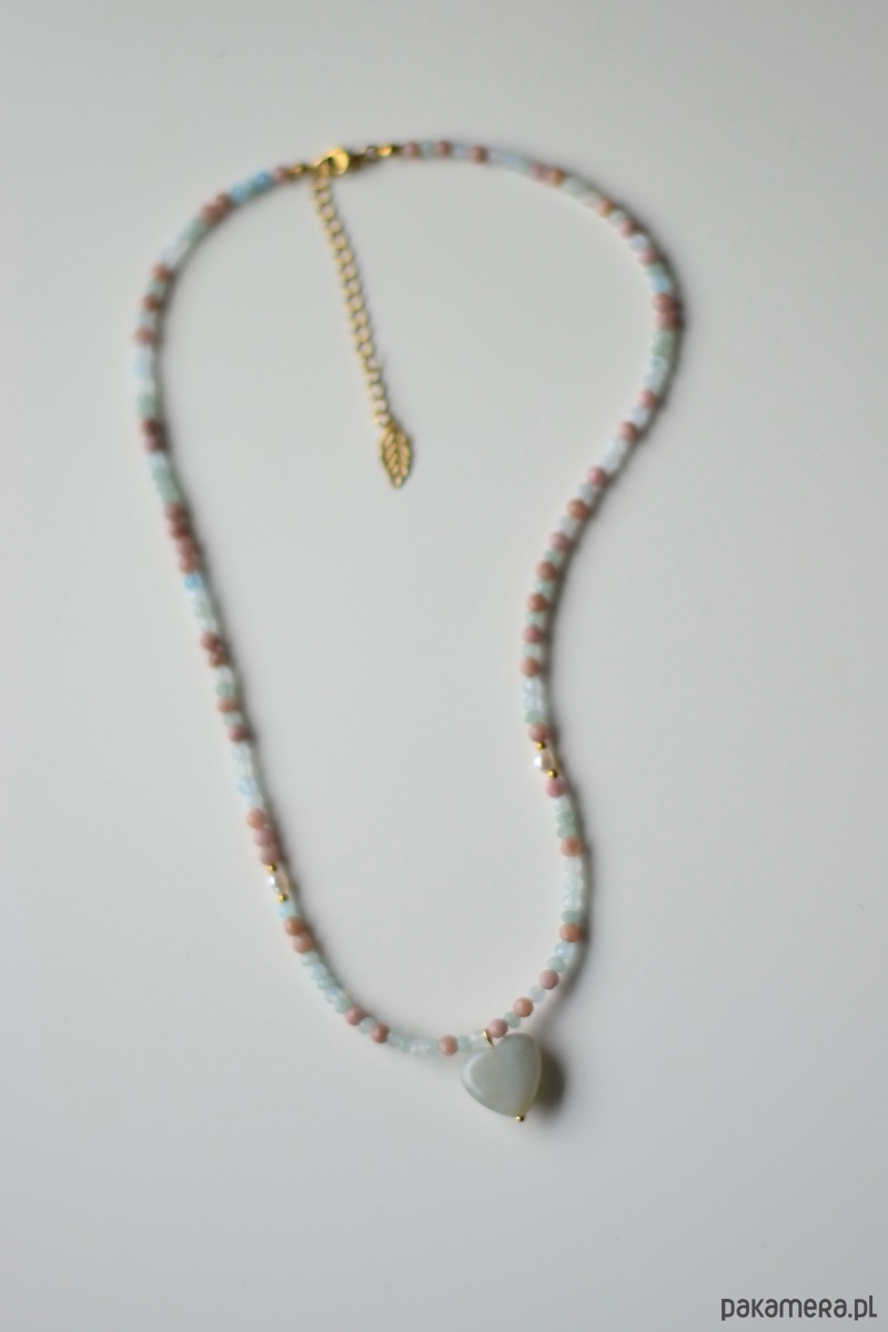 ✧Naszyjnik wykonany z kamieni naturalnych - rodonitu, jadeitu i akwamarynu i zawieszką z amazonitu.