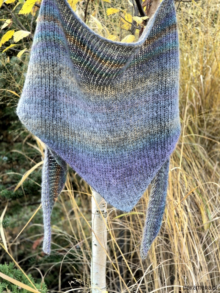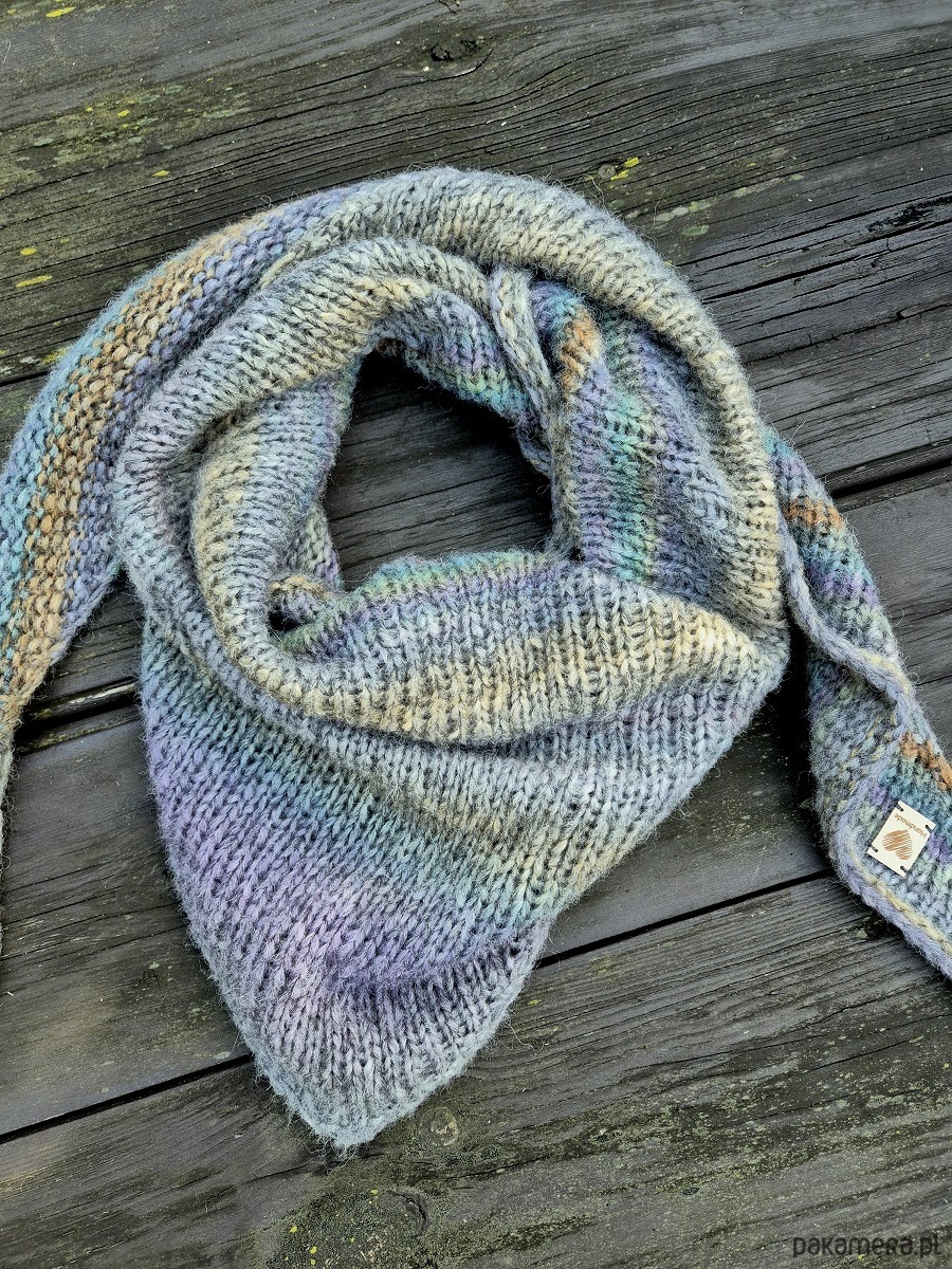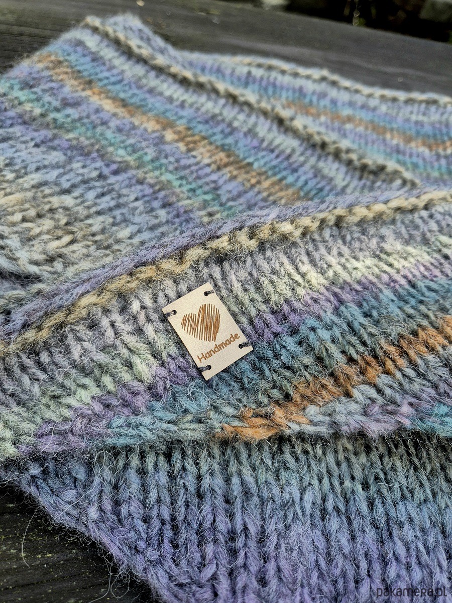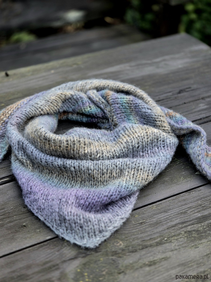 Coś pod szyję, mała chustka/ szal na chłodne dni. Wykonanie ręczne- na drutach. Fantastyczna, miękka i puchata włóczka o splocie łańcuszkowym: 41% baby alpaka, 41% merino, 18% nylon. Chusta w rozmiarze idealnym do otulenia szyi.