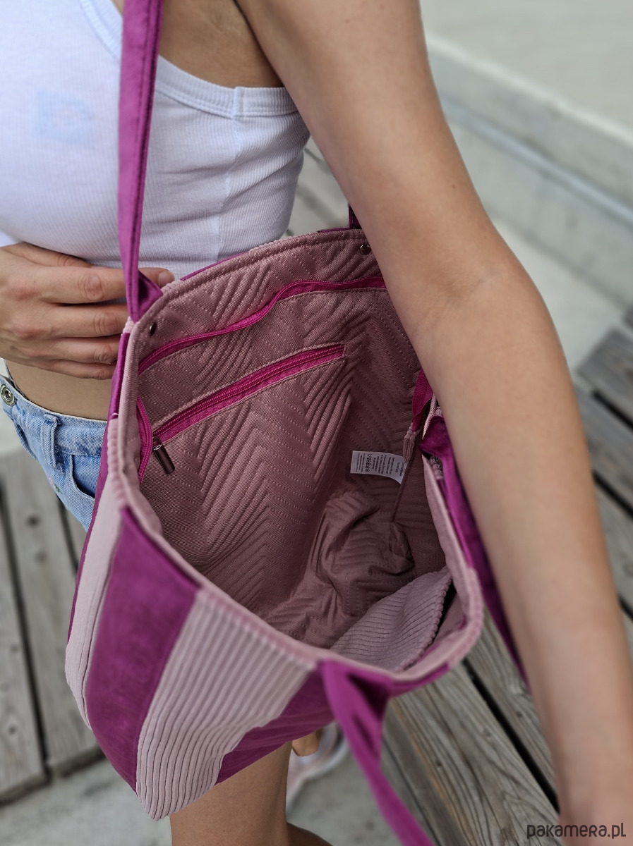 Torba ładnie utrzymuje kształt dzięki pikowanej podszewce.