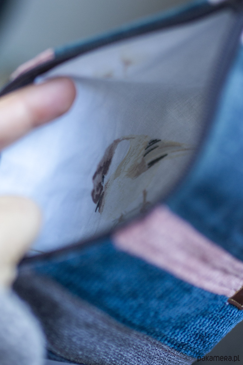Kosmetyczka jest zapinana na suwak, w środku bawełniana podszewka.