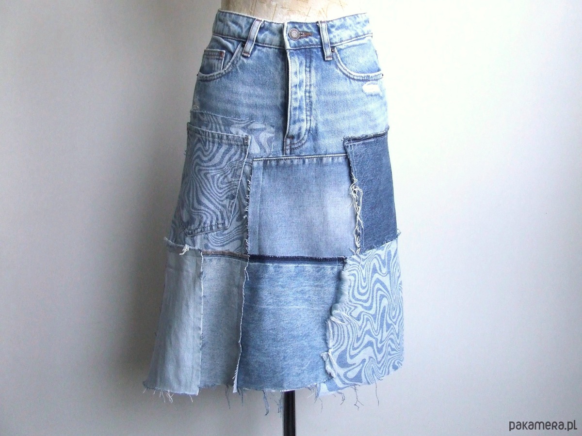 patchworkowa spódnica jeans