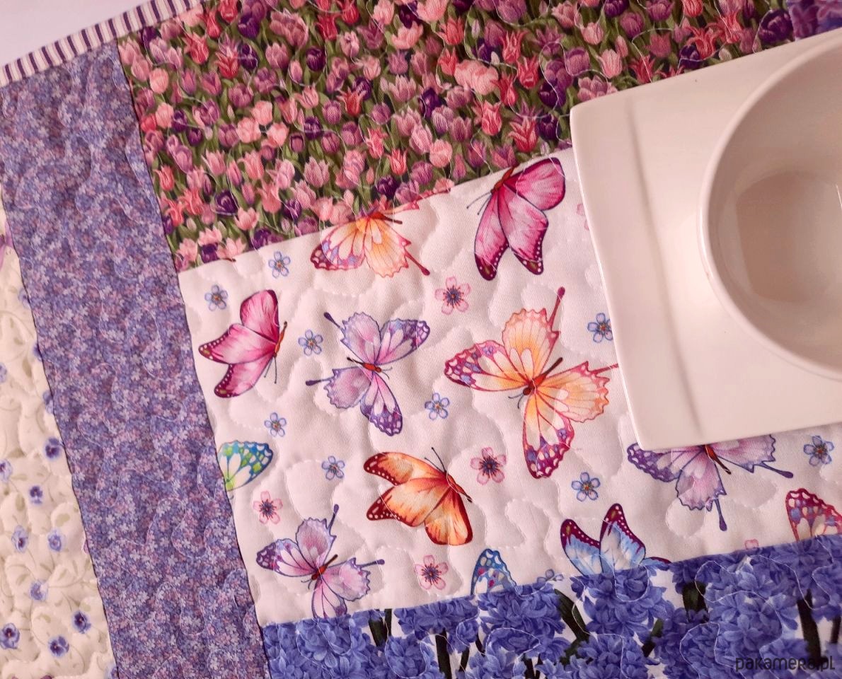 Wykorzystałam kawałki bawełny w nadruk wiosennych kwiatów i motyli.