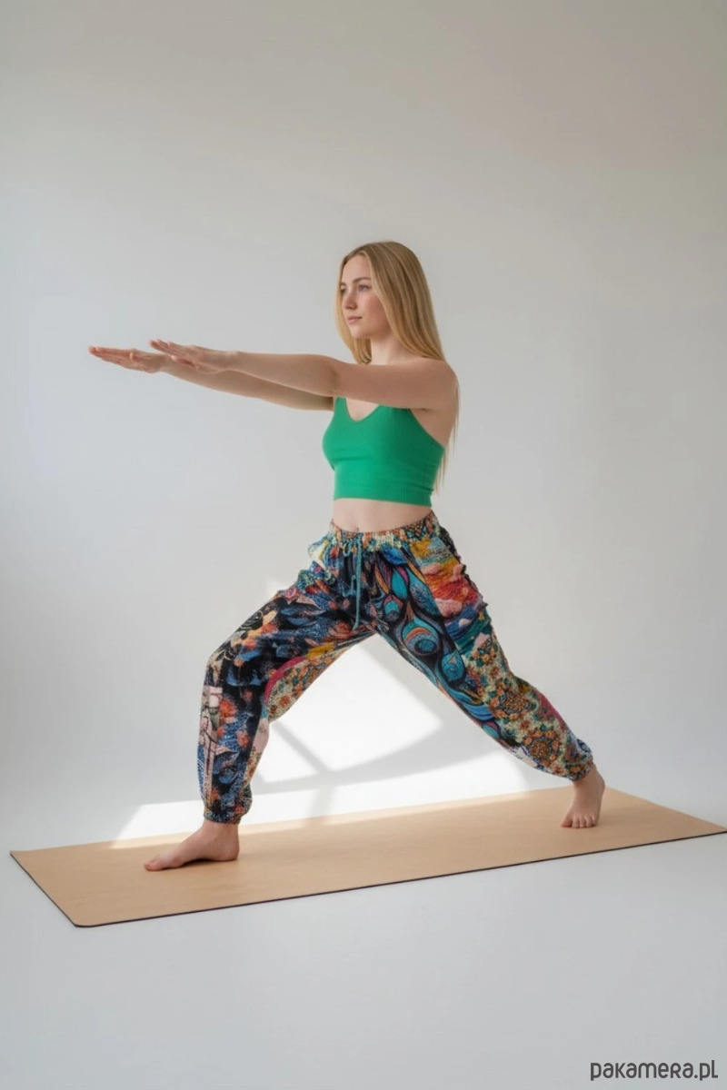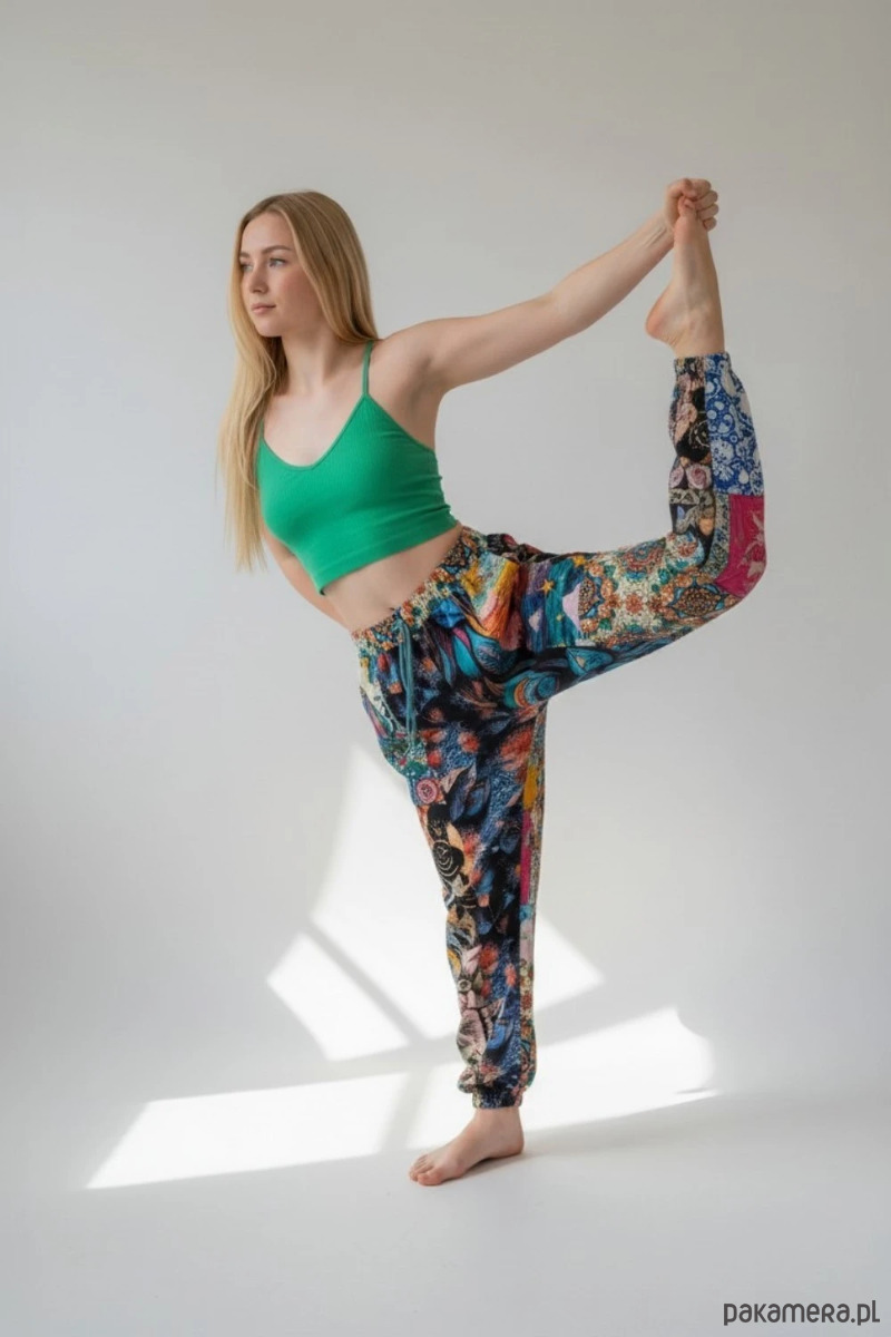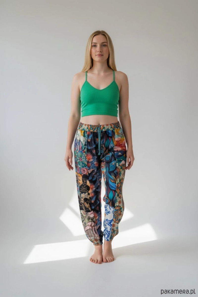 Patchworkowe spodnie dresowe Wikalpa krój haremki rozmiar L