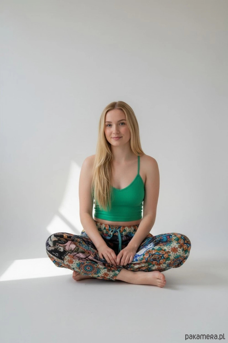 Model Wikalpa ma luźny krój a la haremki który zapewnia swobodę ruchów i nowoczesny wygląd. Nogawki zakończone są gumkami dzięki czemu spodnie dobrze układają się na sylwetce. W pasie znajduje się elastyczna gumka oraz sznurek co pozwala na wygodne dopasowanie do talii. Spodnie posiadają również praktyczne kieszenie.