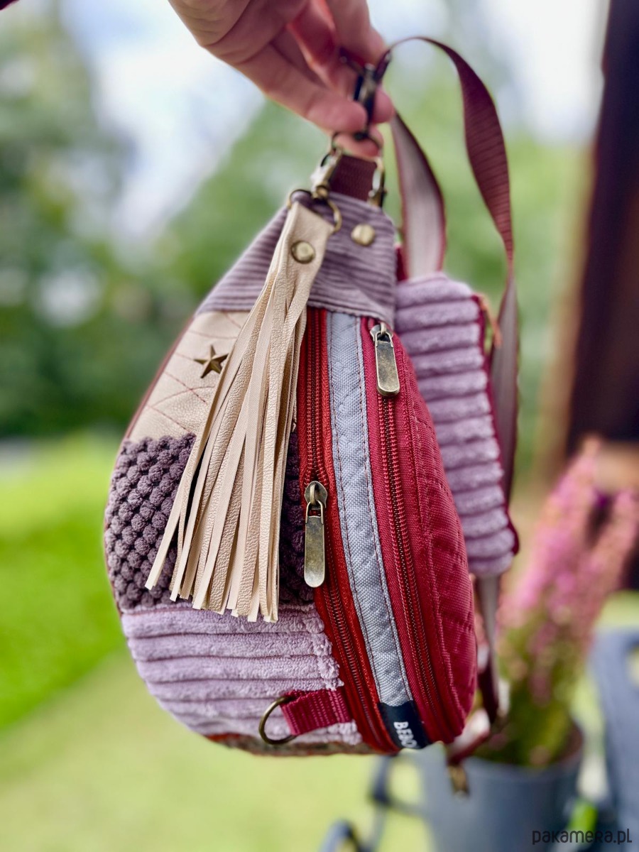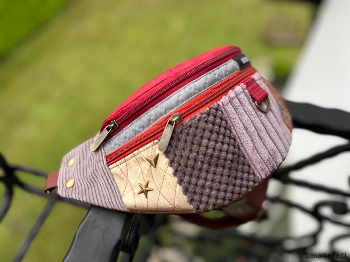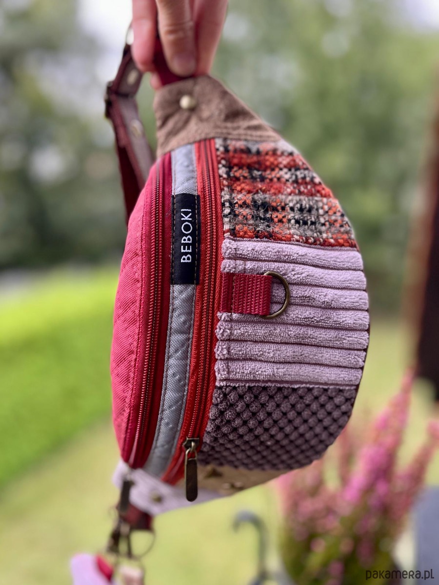 Ręcznie robiona nerka patchworkowa z unikalnym zestawieniem kolorów i faktur, wykonana z wysokiej jakości tkanin wodoodpornych i tapicerskich. Jest usztywniona, trwała i niezwykle praktyczna.
