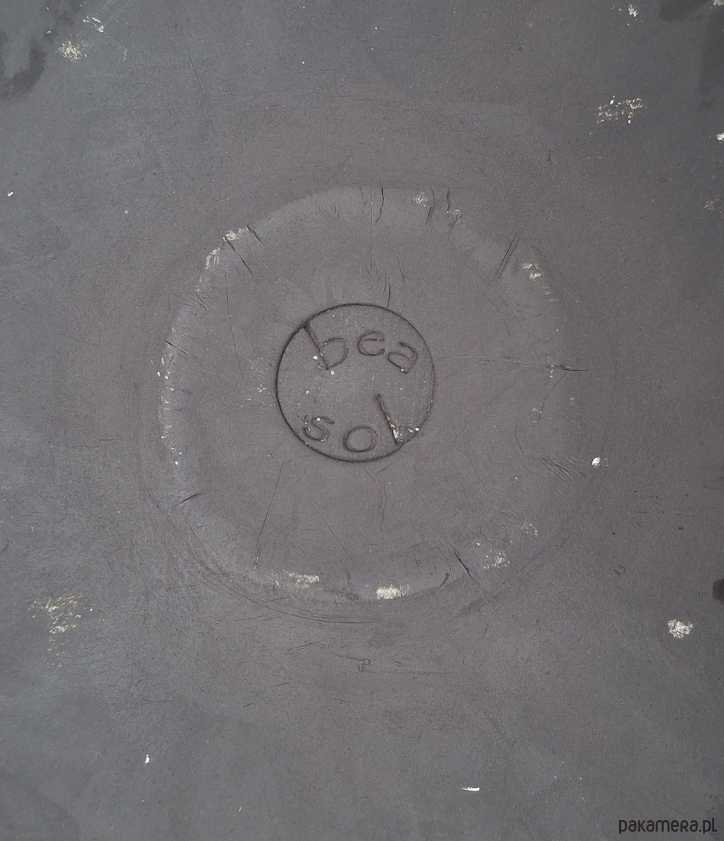 Patera zrobiona jest z czarnej gliny, dwukrotnie wypalona i poszkliwiona. Jej wymiary: 29 cm, wys. ok 5,5 cm.