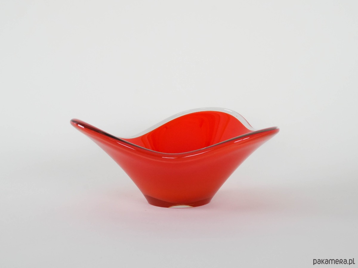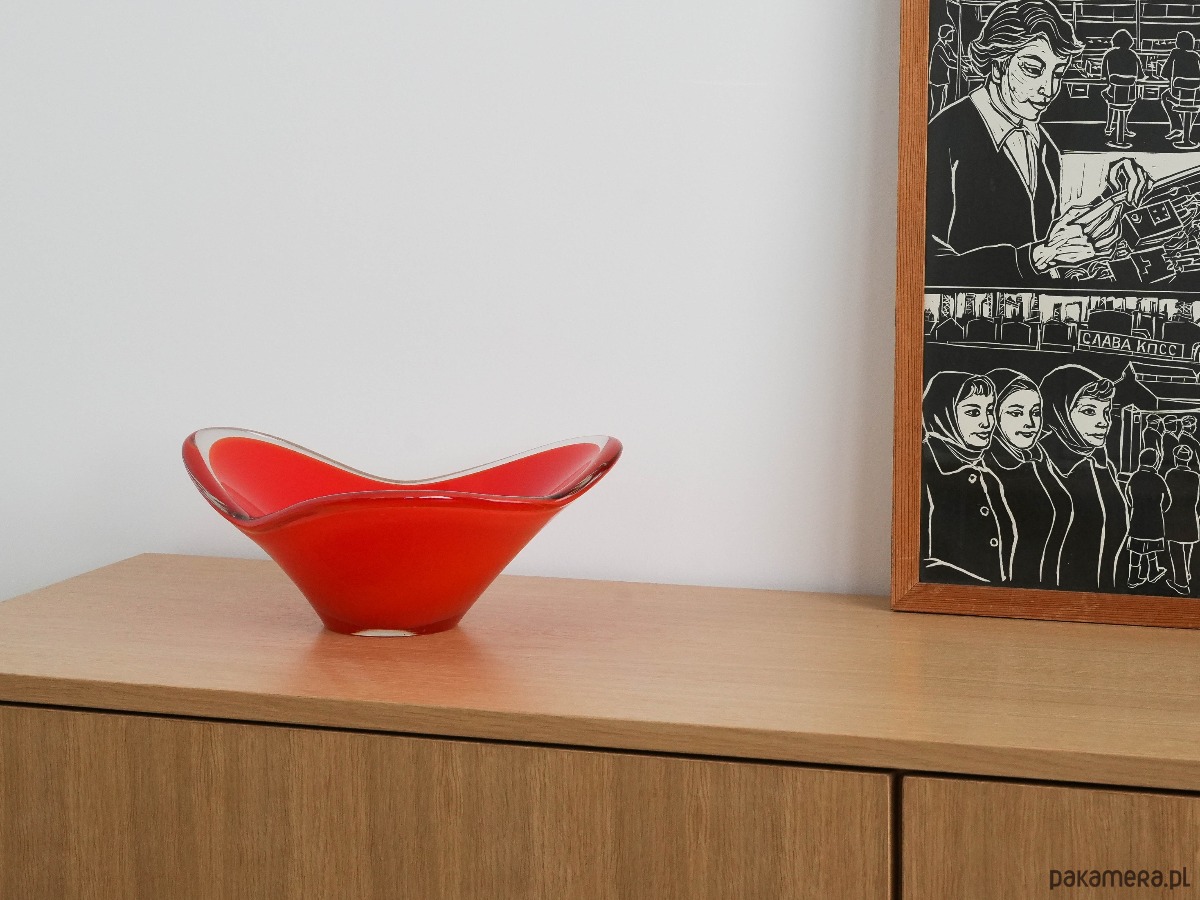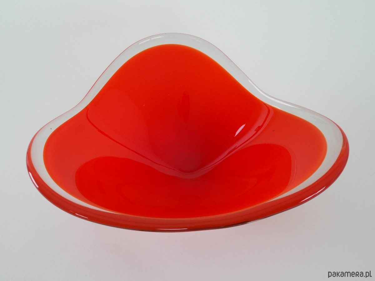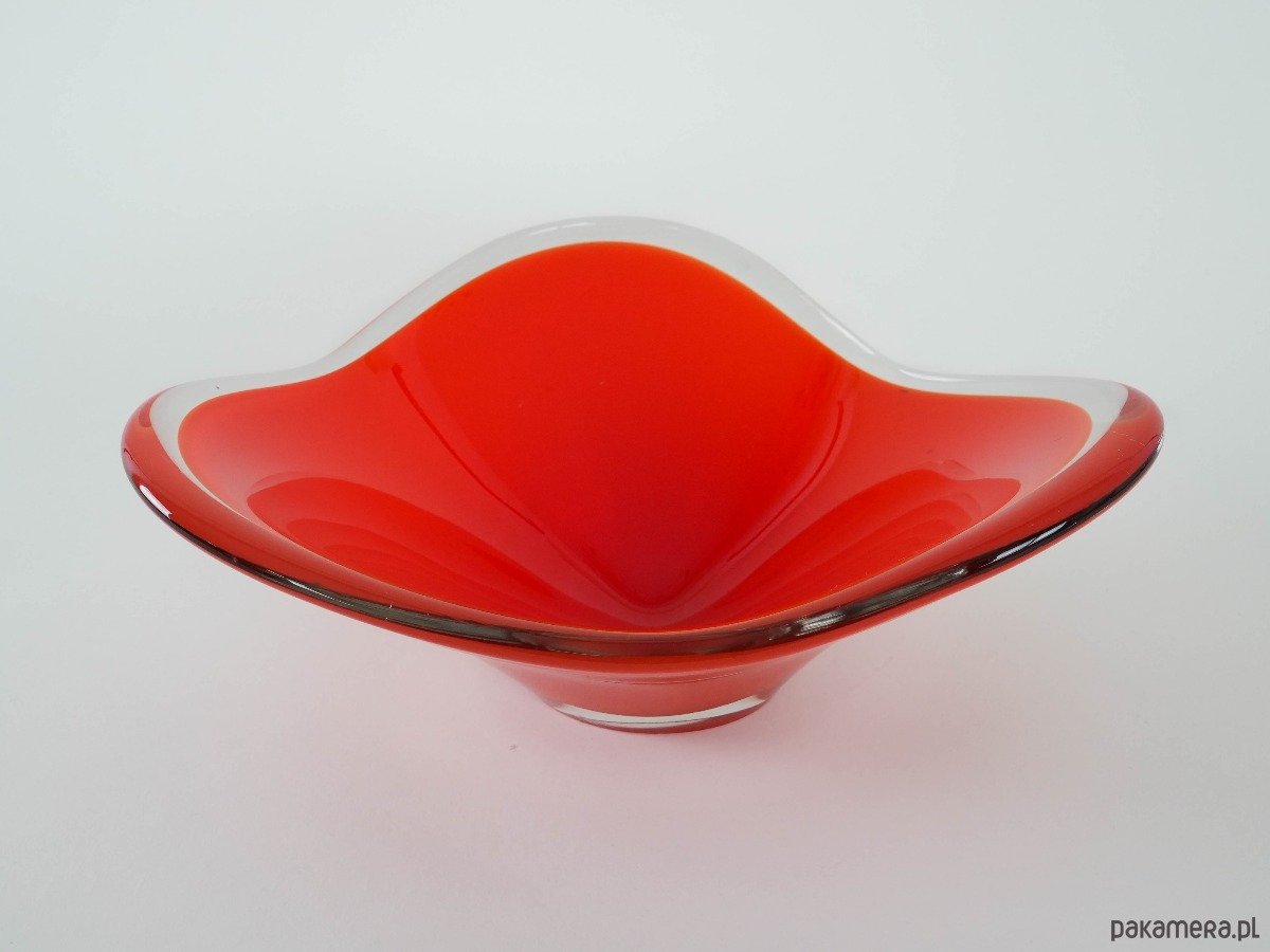 Patera czerwona, szkło Murano, włoski design, lata 60, produkcja: Włochy