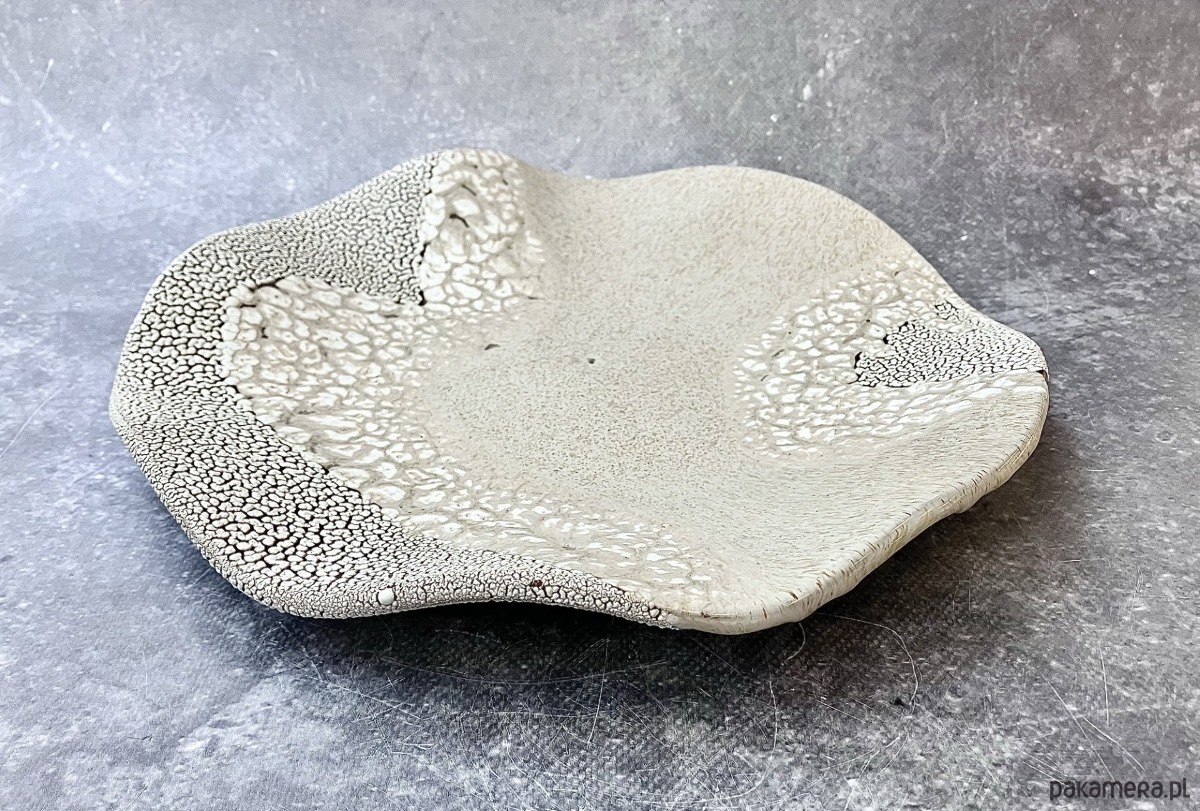 Nieregularne, niemal żywe wzory tworzą efekt przypominający naturalne procesy formowania się raf i osadów, jakby całość została wyrzucona prosto z morskiej głębiny. Ręczne wykonanie sprawia, że każda patera jest absolutnie niepowtarzalna- żadna tekstura nie powtórzy się drugi raz. To wyjątkowy element dekoracyjny, który doskonale sprawdzi się zarówno jako samodzielna ozdoba, jak i tło dla biżuterii, świec, naturalnych kompozycji czy serwowania przekąsek lub owoców.