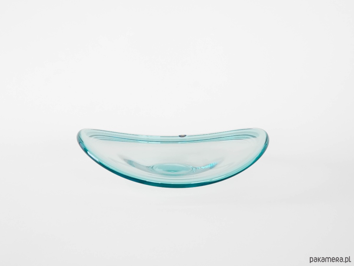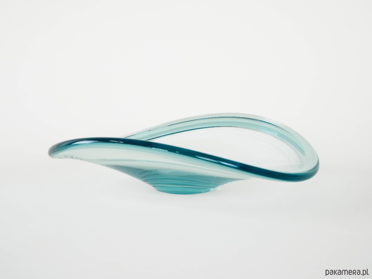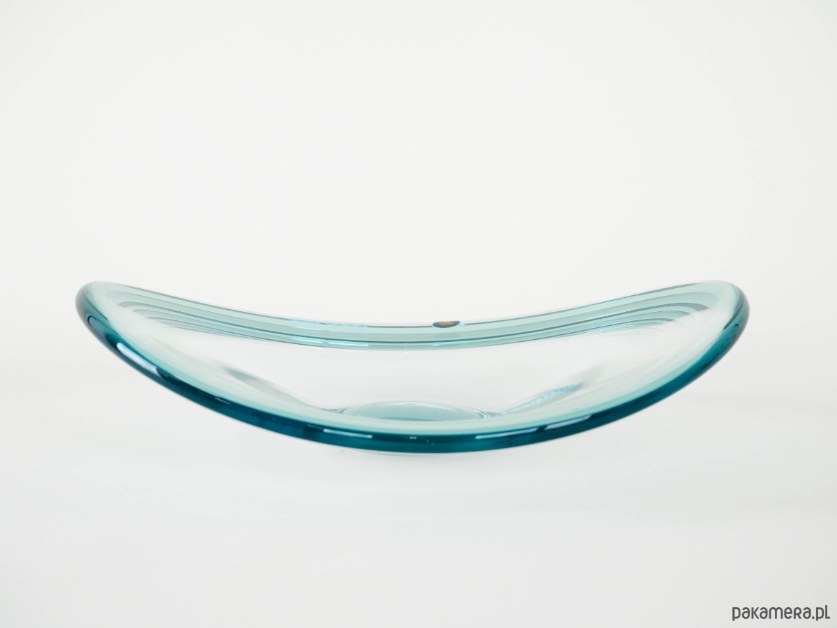 Ręcznie formowana, duża kryształowa patera o organicznym, płynnym kształcie. Minimalistyczna, a jednocześnie niezwykle elegancka forma typowa dla duńskiego modernizmu lat 60. Subtelne załamania światła i lekko niebieskawy odcień szkła dodają jej głębi i rzeźbiarskiego charakteru. Ponadczasowy przykład skandynawskiego wzornictwa, który świetnie sprawdzi się zarówno jako element dekoracyjny, jak i użytkowy.