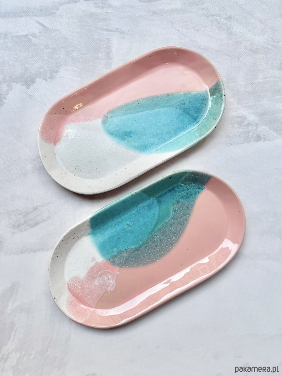Każda patera może różnić się delikatnie we wzorach i kolorach, gdyż produkty wyrabiam oraz szkliwię ręcznie. To w ceramice kocham najmocniej – wszystko ma swoją oryginalność i niepowtarzalność.