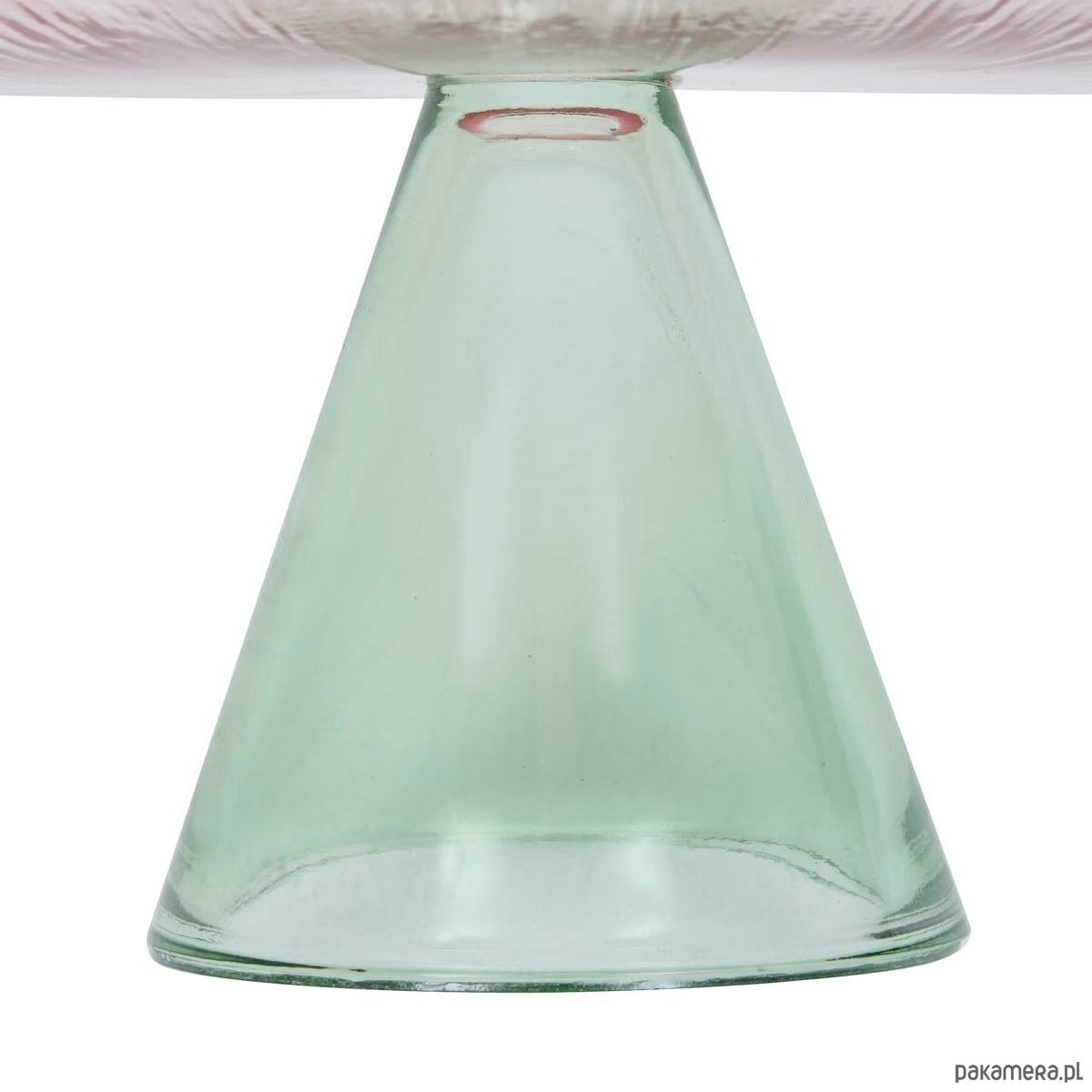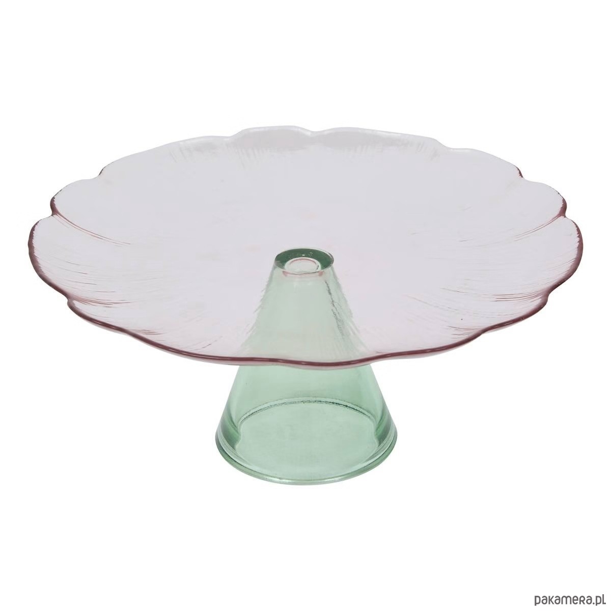Patera na ciasto idealnie nadaje się do eleganckiej prezentacji słodkości. Składa się ze stożkowej podstawy i tacki przypominającej kwiat o celowo nieregularnych krawędziach. Wykonana jest z przezroczystego szkła o delikatnych odcieniach różu i zieleni. Patera o średnicy 28 cm idealnie nadaje się do wyeksponowania tortu urodzinowego lub pojedynczych przystawek.