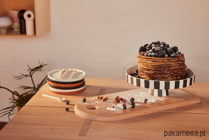 Seria Toppu łączy w sobie estetykę i praktyczność. Patera na ciasto Toppu nie tylko pięknie prezentuje wypieki i owoce, ale również stanowi elegancki element dekoracyjny na każdym stole. Graficzne wzory i kontrastowe kolory nadają jej nowoczesny i elegancki wygląd, idealny do wnętrz w stylu nordyckim i nie tylko. Wykonana ręcznie z kamionki, patera jest zarówno trwała, jak i estetyczna.