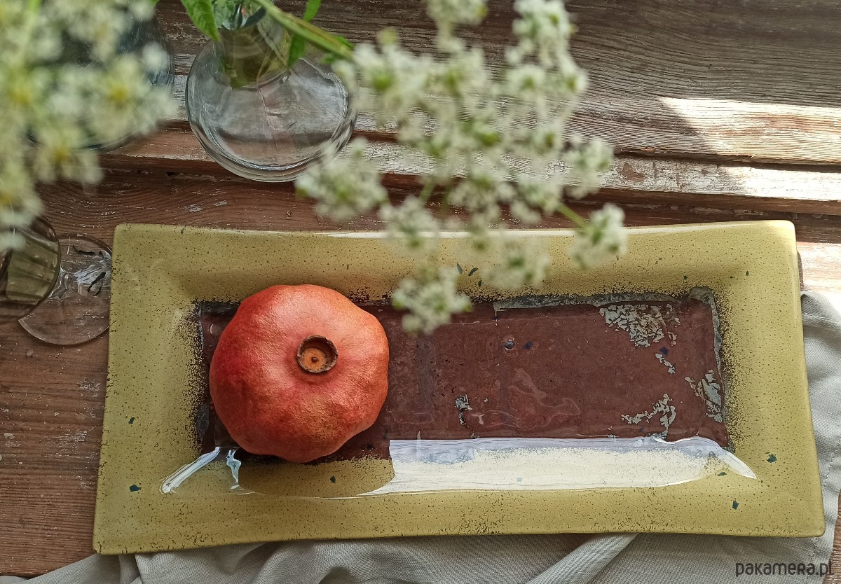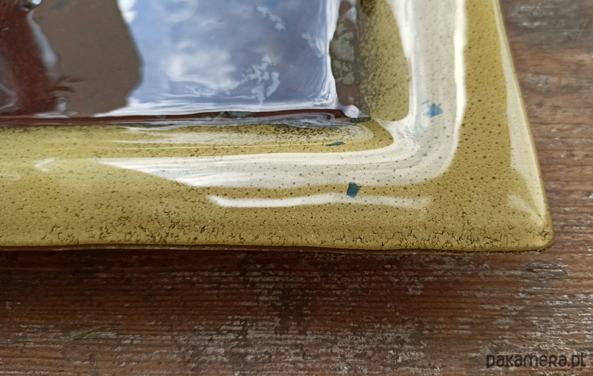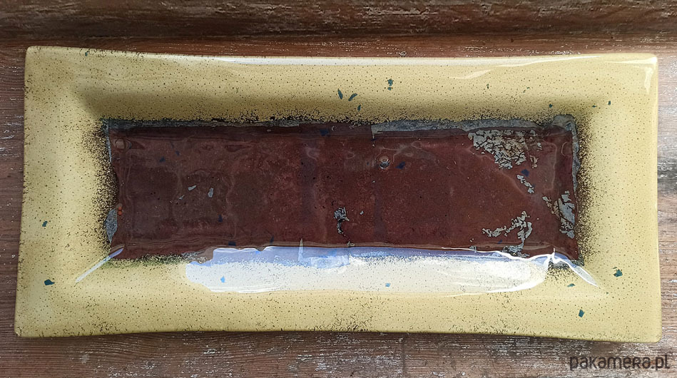 Niepowtarzalna patera w stonowanych kolorach ciepłego piasku, rdzawego brązu i srebra. Wykonana została ze szkła w technice fusingu, kolor jest trwale zgrzany pomiędzy dwoma warstwami szkła w temperaturze ponad 800stopni. Spodnia strona szkła z delikatną fakturą. Wymiary 16,5 x 39cm
