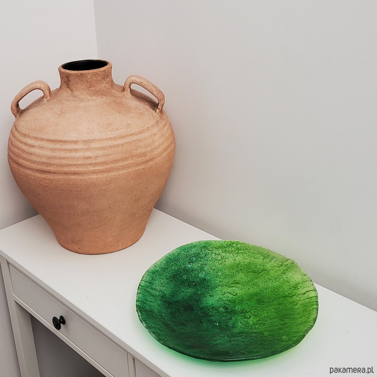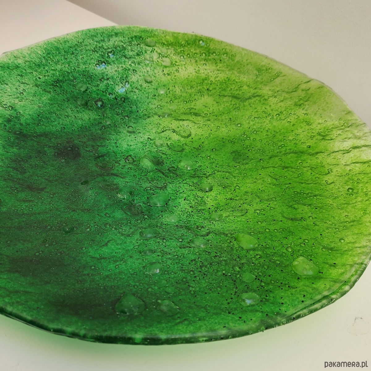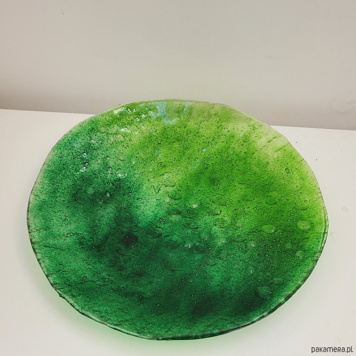 Niepowtarzalna i jedyna w swoim rodzaju, patera szklana , utrzymana w tonacji zieleni, formowana w temperaturze 820C. . Średnica jej to około 32cm. Ozdobi każde wnętrze. Zapraszam serdecznie do jej zakupu
