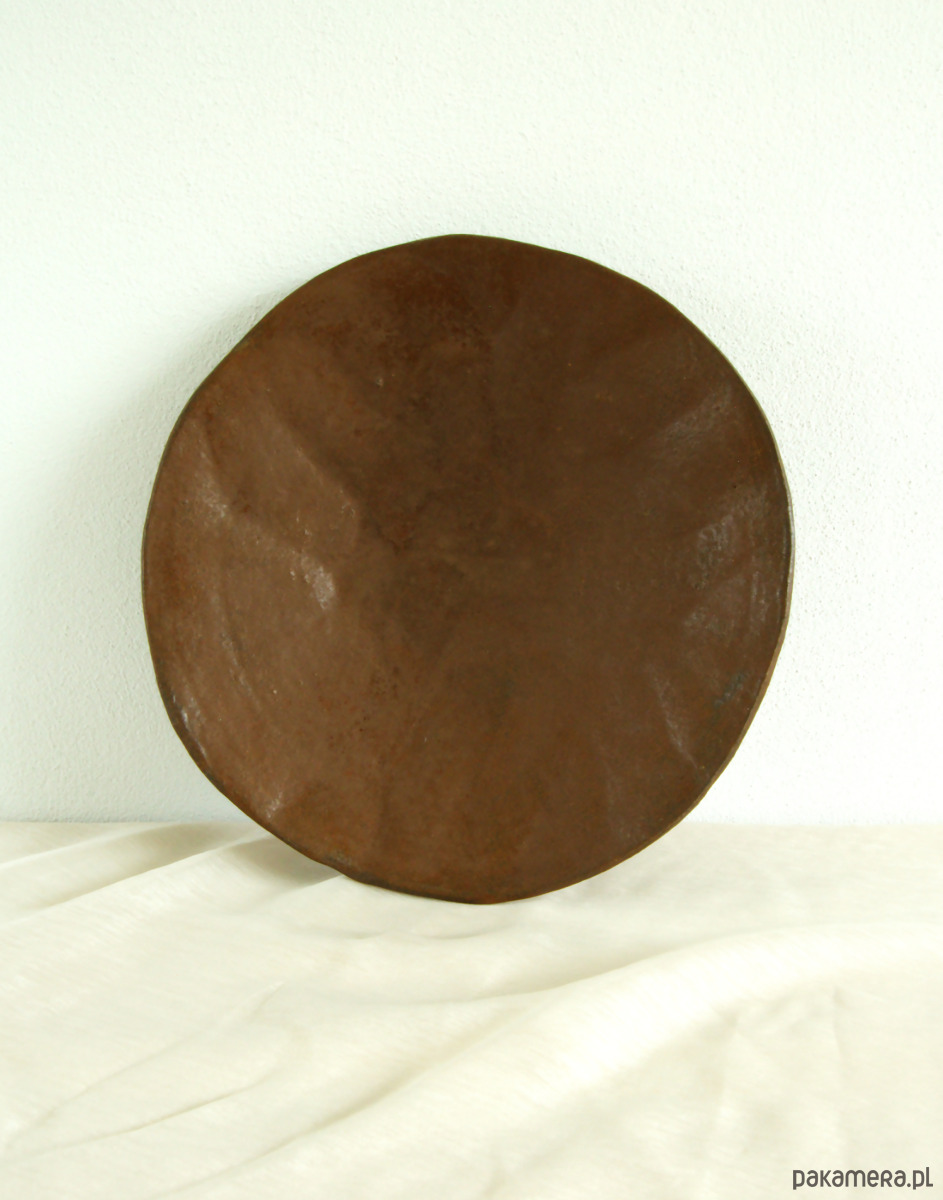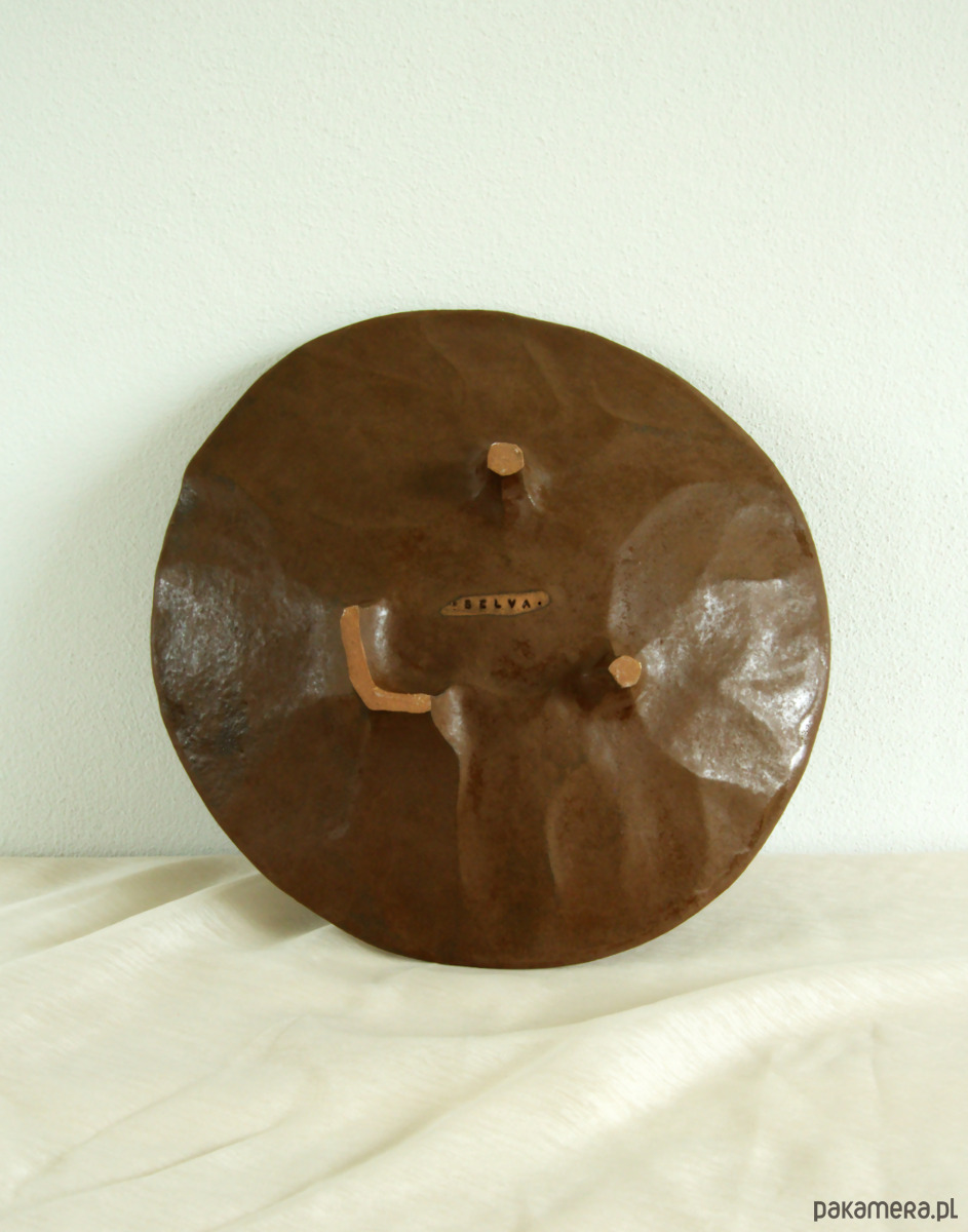 Całość pokryta jest brązowym szkliwem o naturalnej, głębokiej tonacji, które subtelnie reaguje na światło, uwydatniając strukturę powierzchni i niuanse formy. Kolor przywodzi na myśl ziemię, glinę i naturalne minerały, wpisując obiekt w spokojną, ponadczasową estetykę inspirowaną naturą.