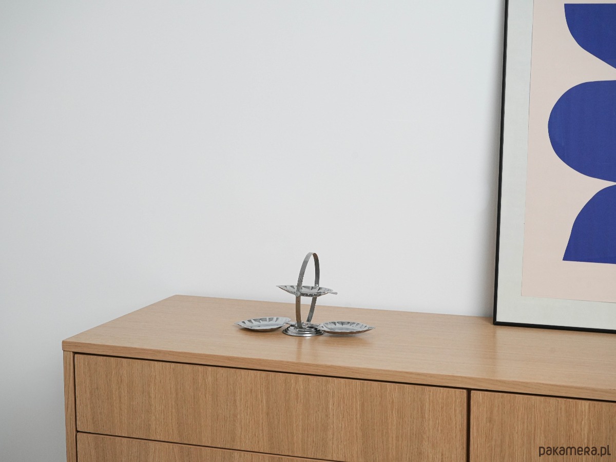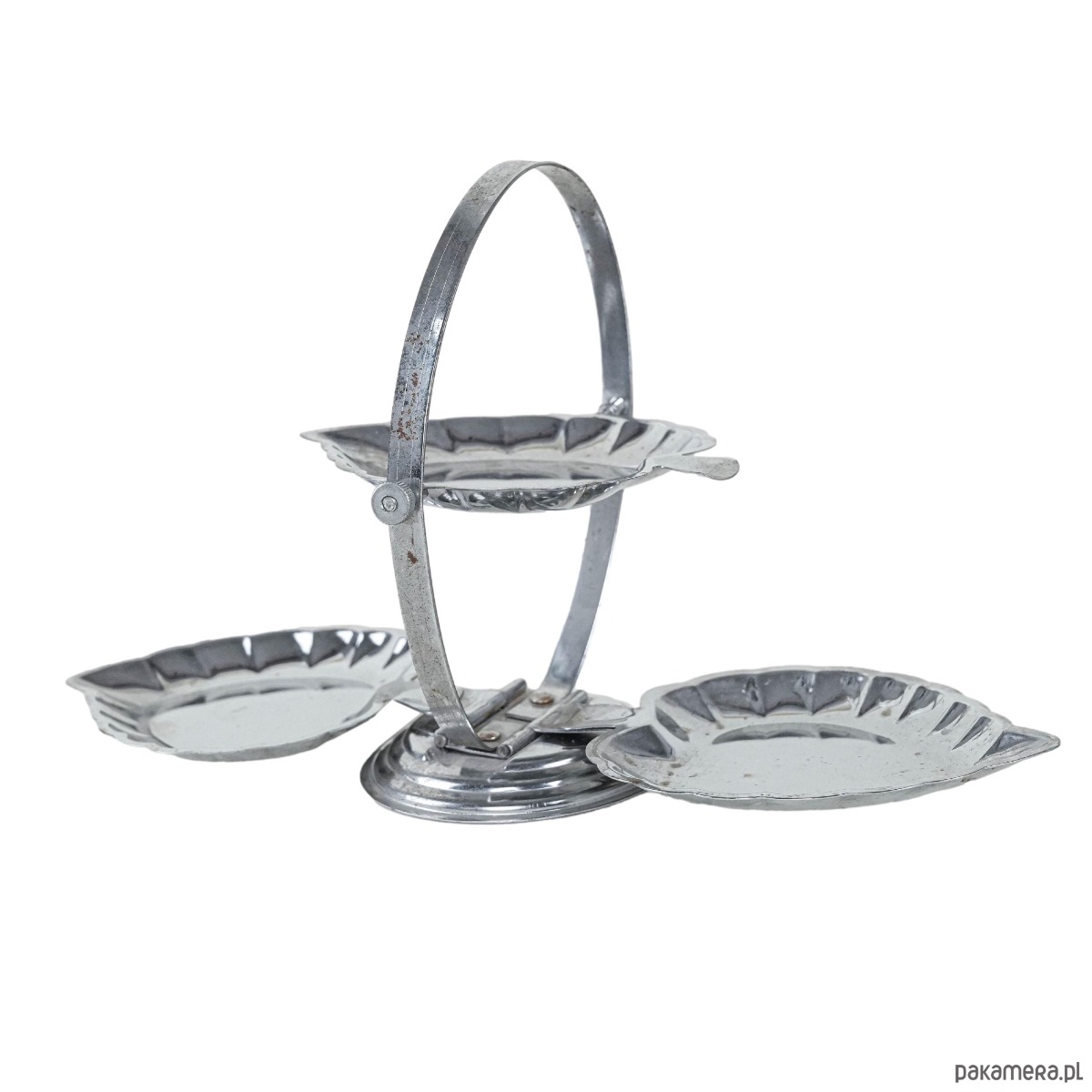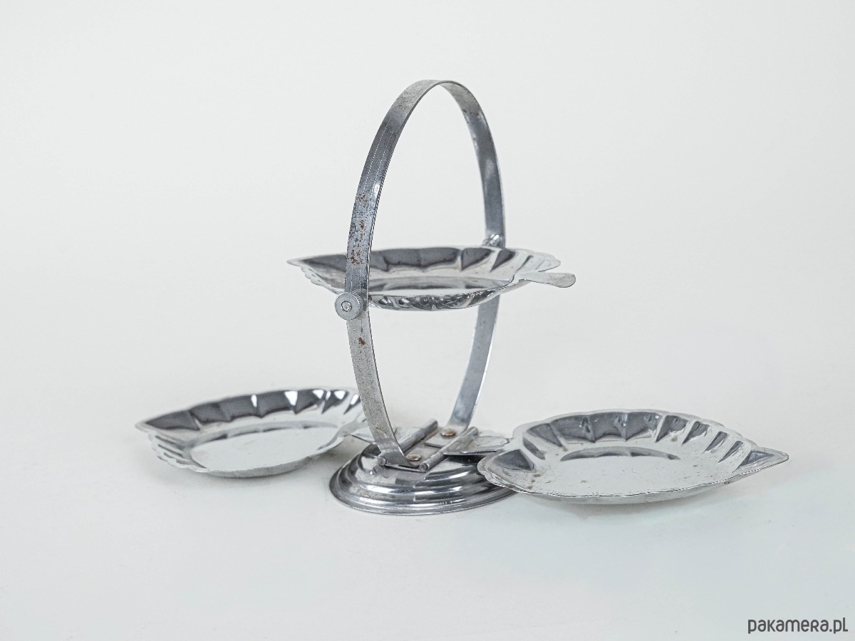 Patera trzypoziomowa metalowa, włoski design, lata 70, produkcja: Włochy
